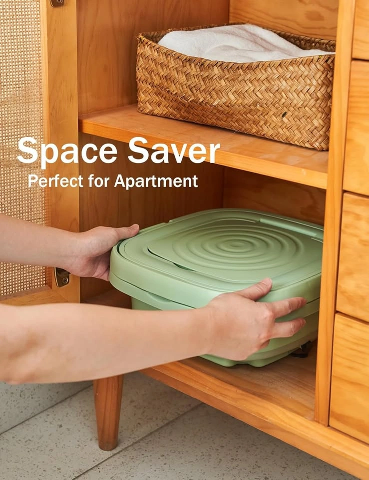 Pickup at Richmond ✨ Foldable & Portable Compact, lightweight design folds for easy storage in a suitcase or cabinet. Ideal for apartments, dorms, travel, camping, or RV use. 🌀 Dual Rotation Cleaning Clockwise + counterclockwise washing removes stubborn stains more effectively. Built-in blue light function provides extra sanitation—great for underwear and baby clothes. ⚡ Simple One-Touch Operation Easy-to-use control panel with power + mode buttons. Quick setup, beginner-friendly. ⏱ 3 Wash Modes Standard Wash: 10 min Soft Wash: 15 min Semi-Dehydration: 2 min Flexible options for different fabrics. 💧 Eco-Friendly & Efficient Uses only 1/20th the water of a standard washer and just 0.005 kWh per 10 minutes—saves water, energy, and money.