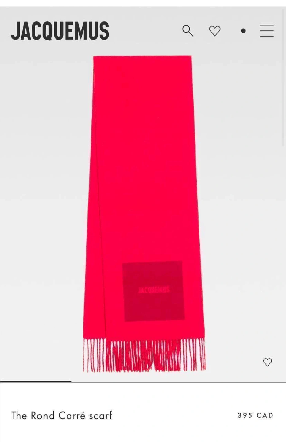 ✨ Decluttering ✨ Affordable prices, quick pick up. 📍 St. George / Sheppard West / Victoria Park ✅ Description: Description: Pre-loved item in perfect condition Red wool scarf. Features a Jacquemus logo. Fringed edges. Luxurious feel. - Long wool scarf - Solid colour wool - Contrast jacquard circle and square - Width: 35cm - Length: 180cm - 12cm fringe on each end I paid $450 with taxes and delivery , worn few times, like new condition Price is fix !