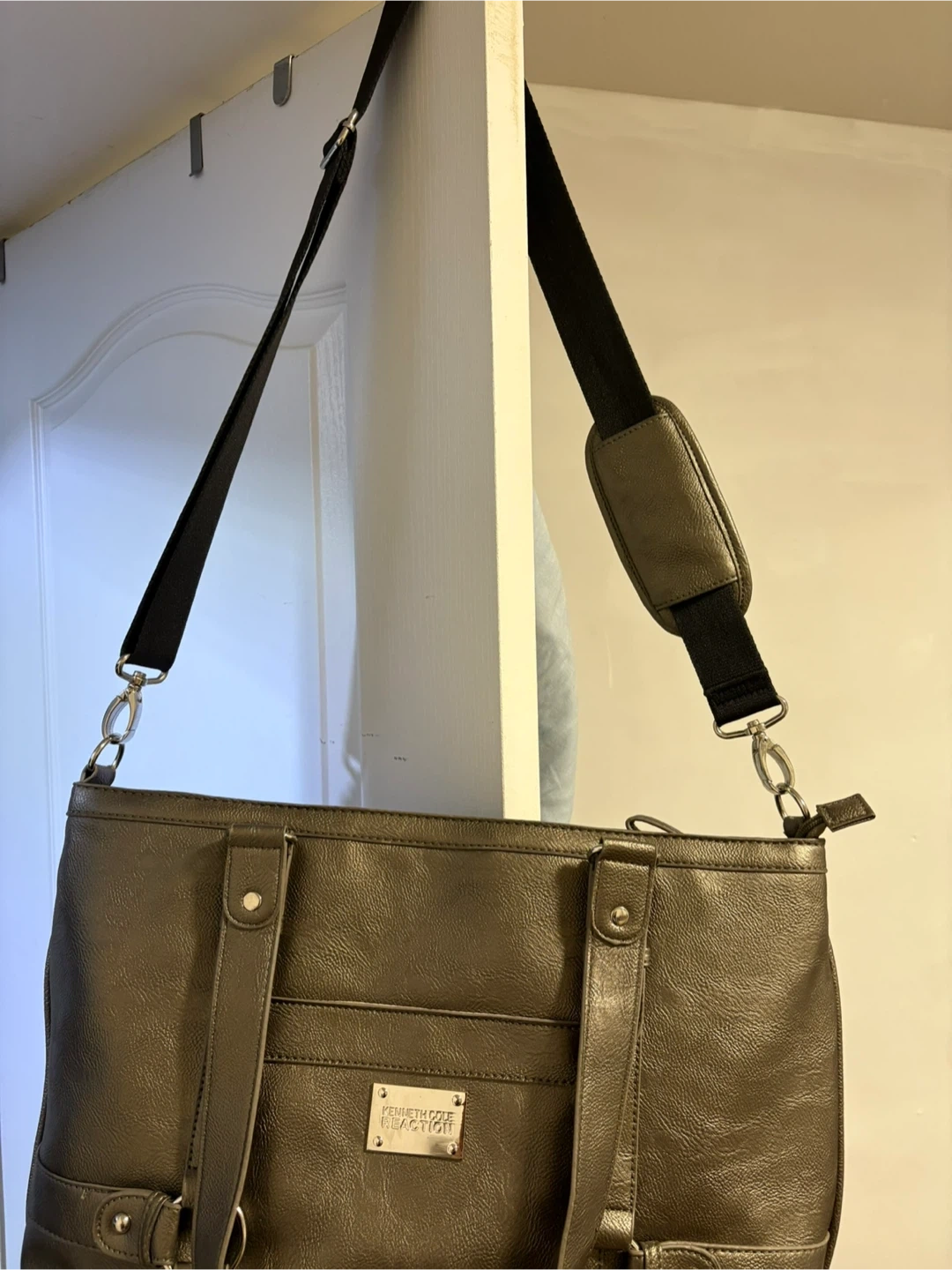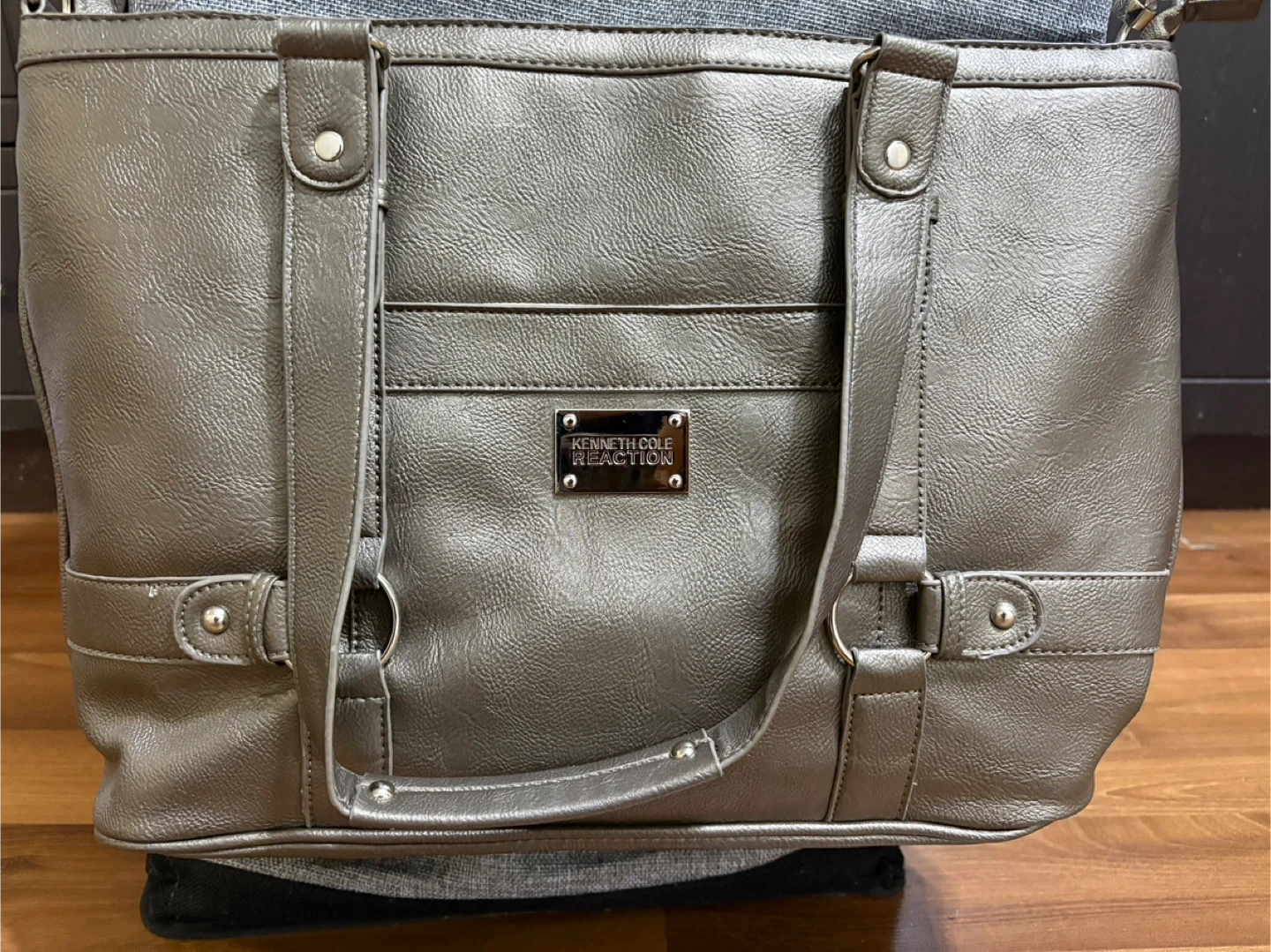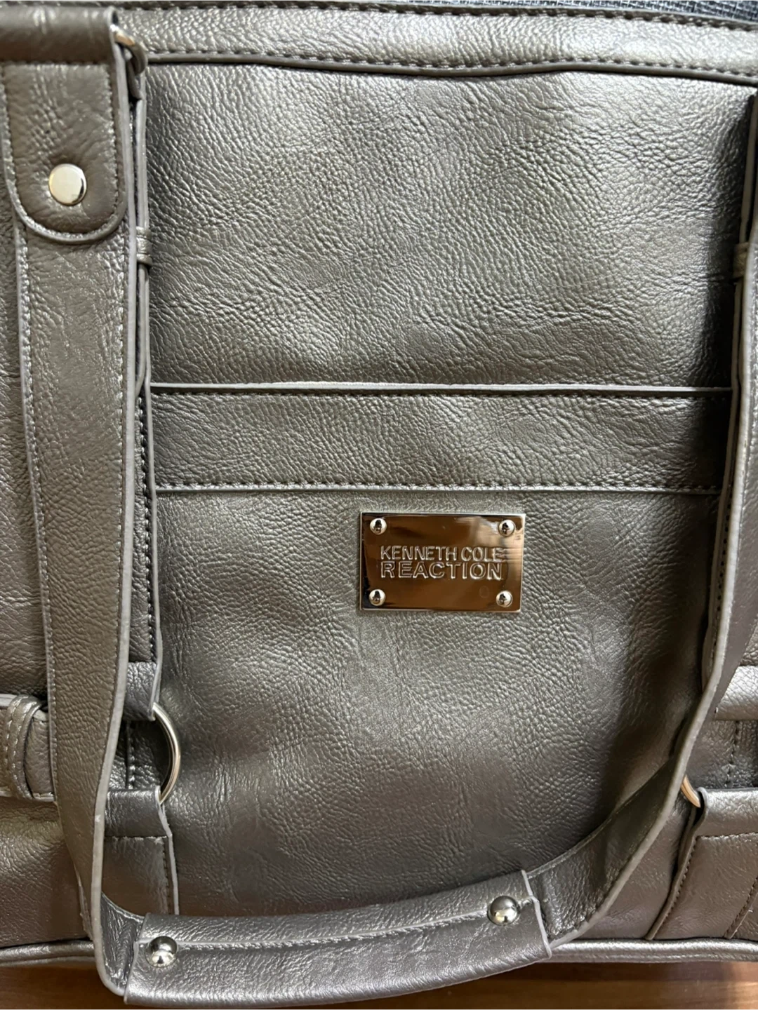 Selling a Kenneth Cole Reaction tote bag in a lovely grey colour! It's in great condition and perfect for carrying your essentials. The bag has multiple compartments inside for organization.