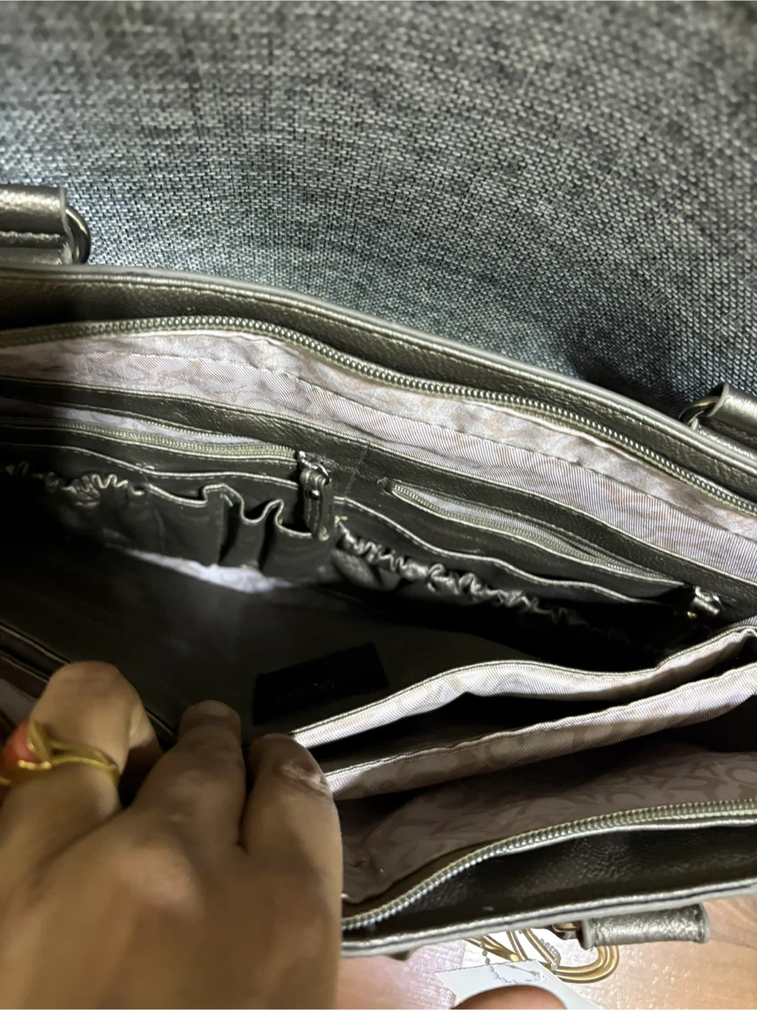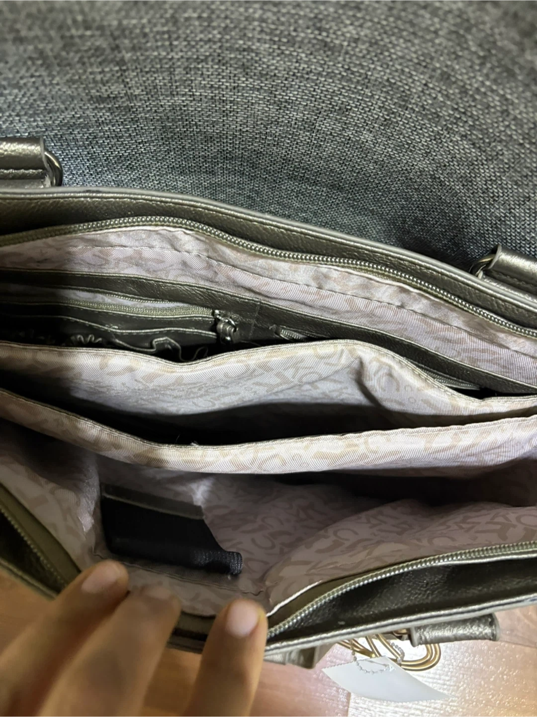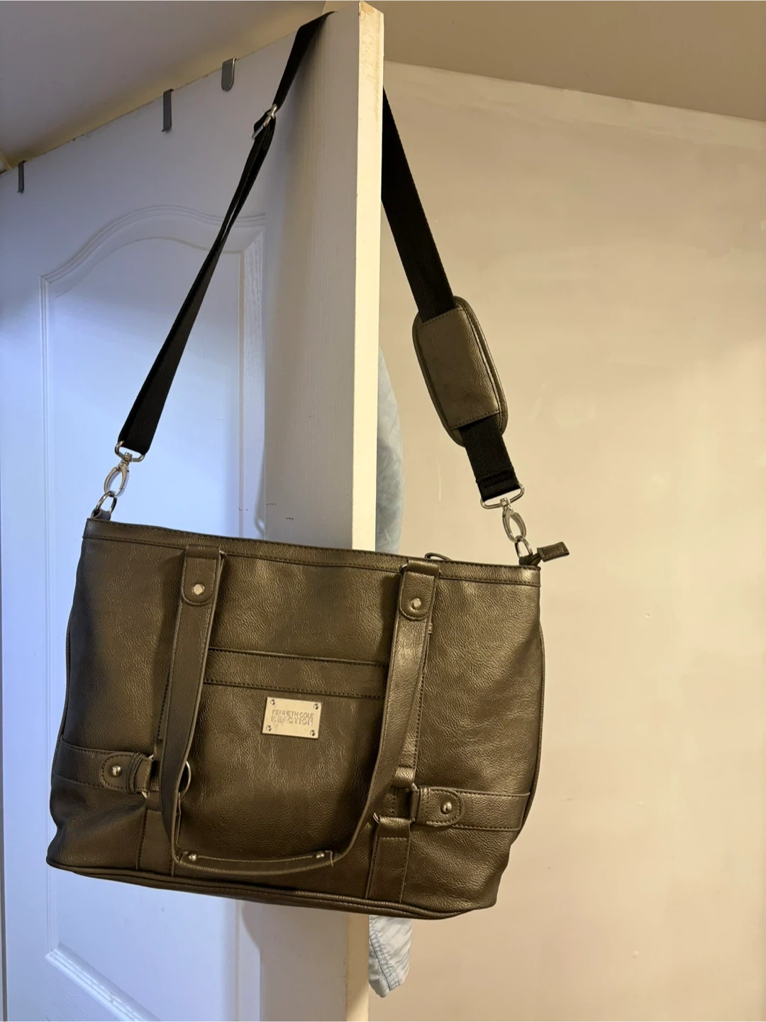 Selling a Kenneth Cole Reaction tote bag in a lovely grey colour! It's in great condition and perfect for carrying your essentials. The bag has multiple compartments inside for organization.