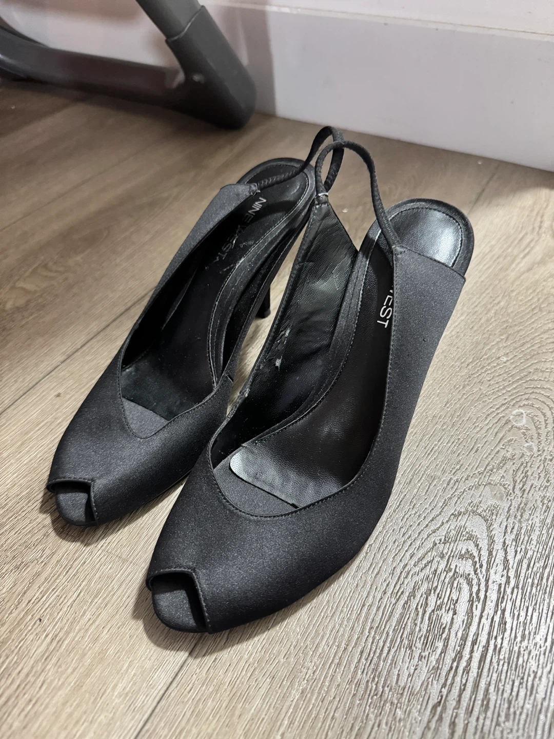 Selling a pair of Nine West black slingback heels in size 8.5M. They're in good condition and perfect for dressing up any outfit!