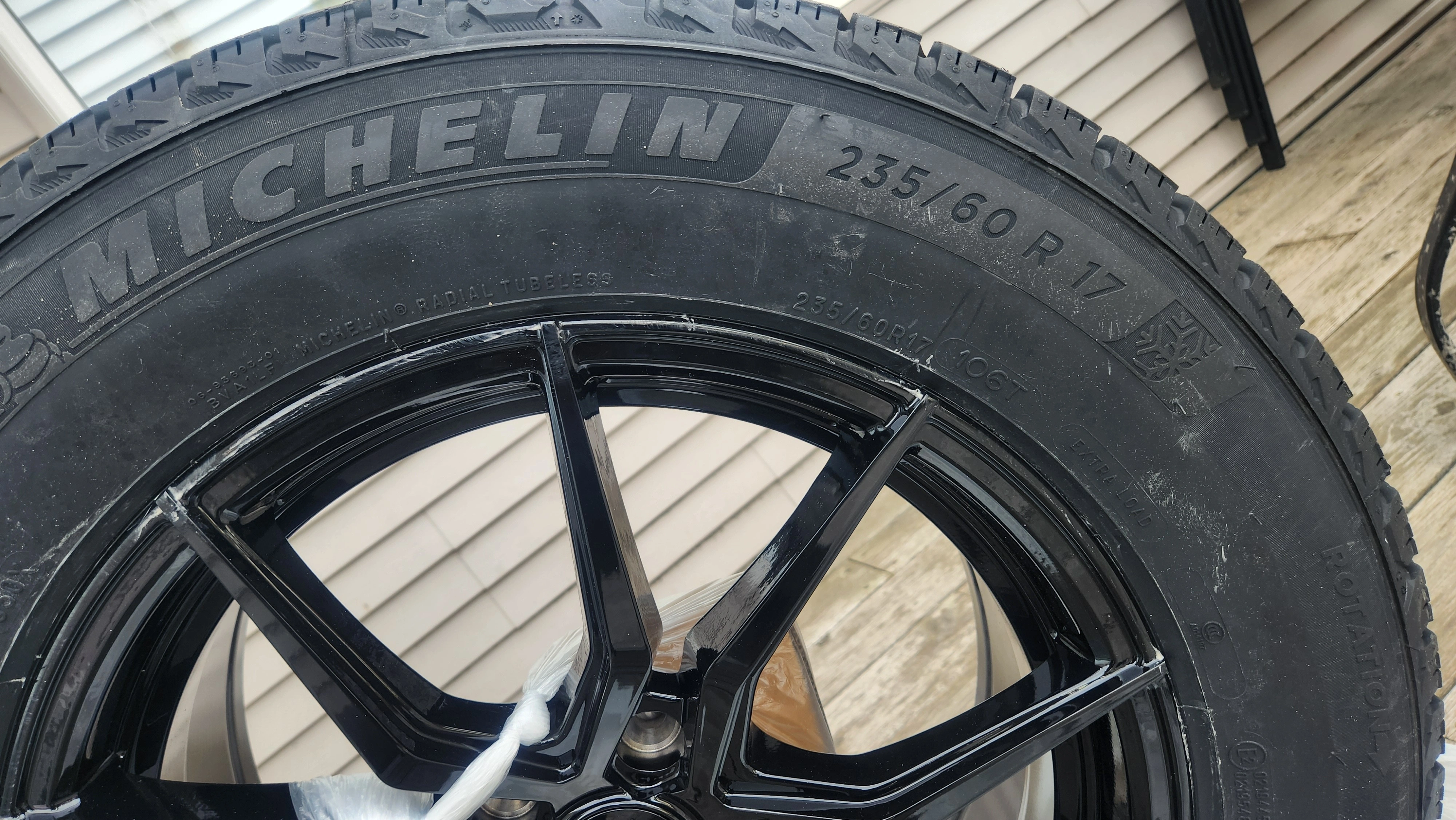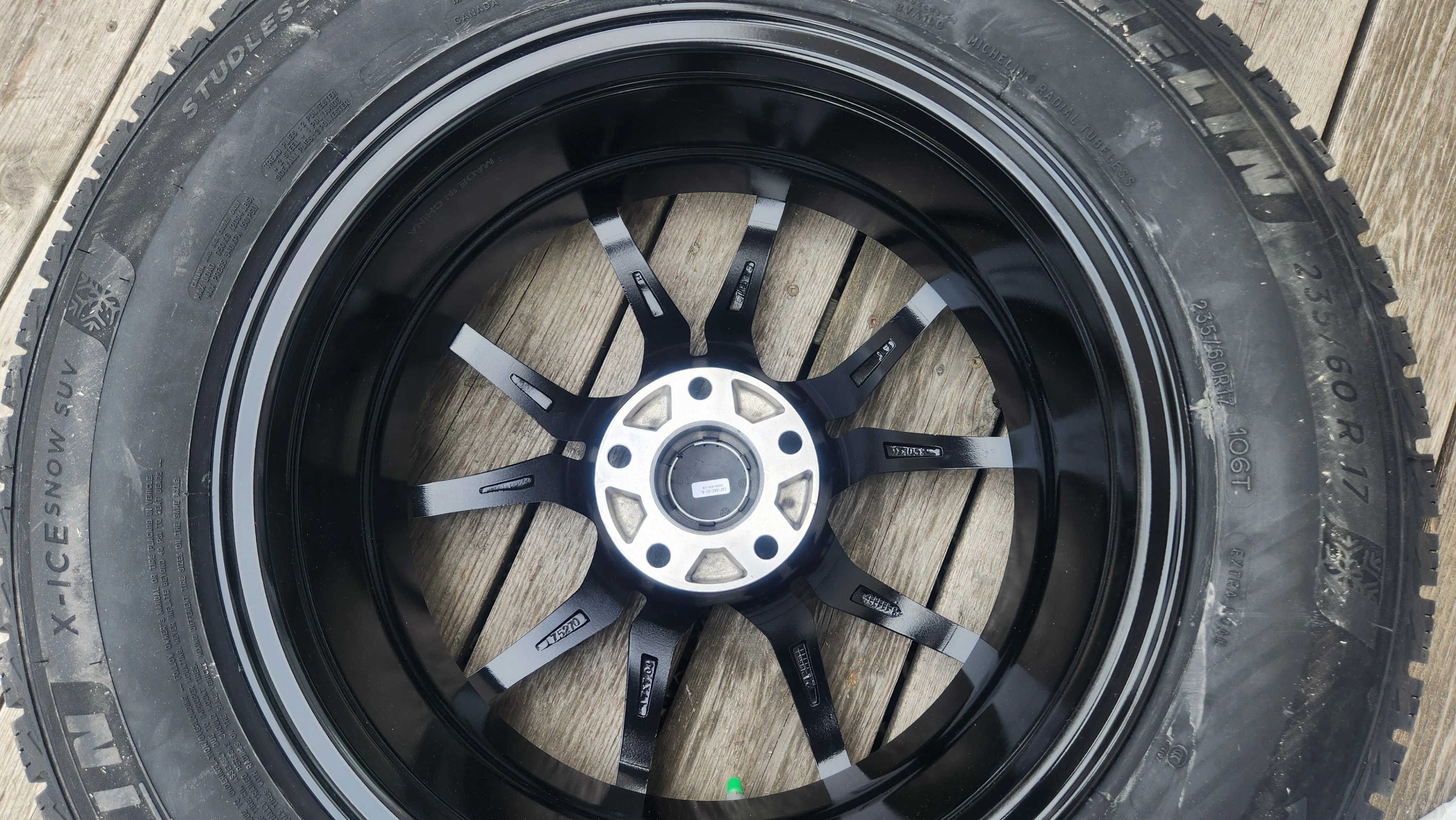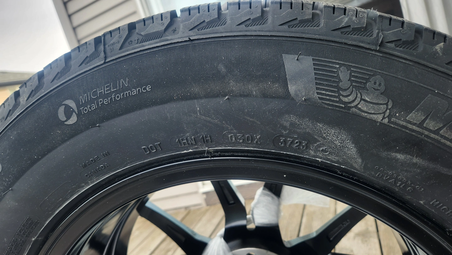 4 Brand New Winter Tires mounted on Alloy Rims with TMPS and mounting Spacers for Sale (Size 235/60R17) My new Toyota vehicle purchase was on an irrevocable package that included an extra set of wheels (Rim and Tires for winter). I prefer all season tires. The tires are Michelin X-Ice winter (mountain flake). The rims are alloy with black coating. Each wheel is equipped with TMPS (tire pressure monitoring system). The tires were manufactured on 3723 (37th week of 2023).