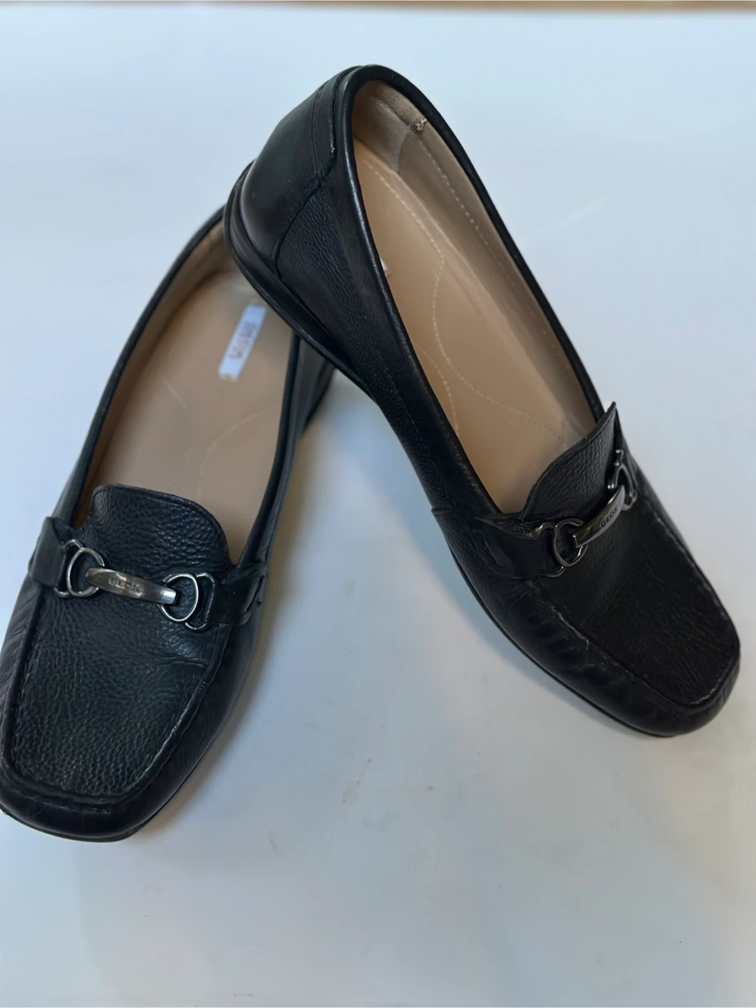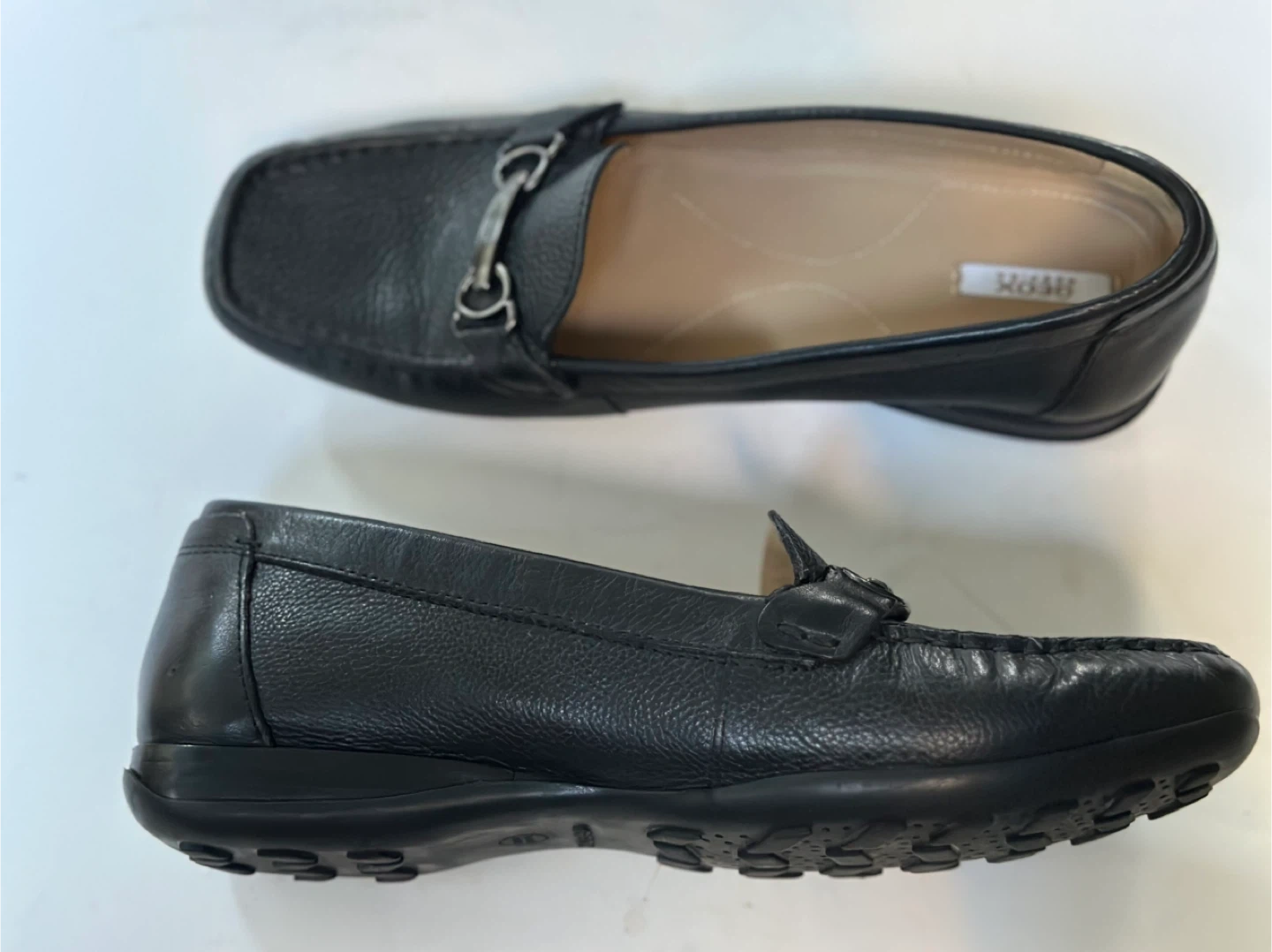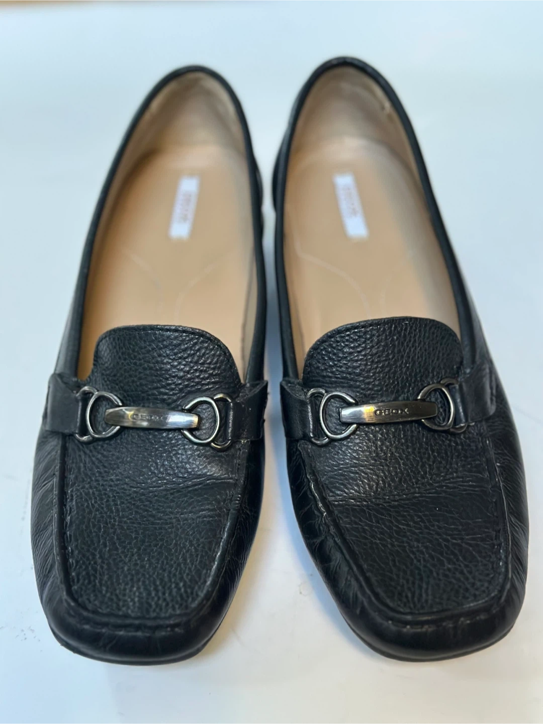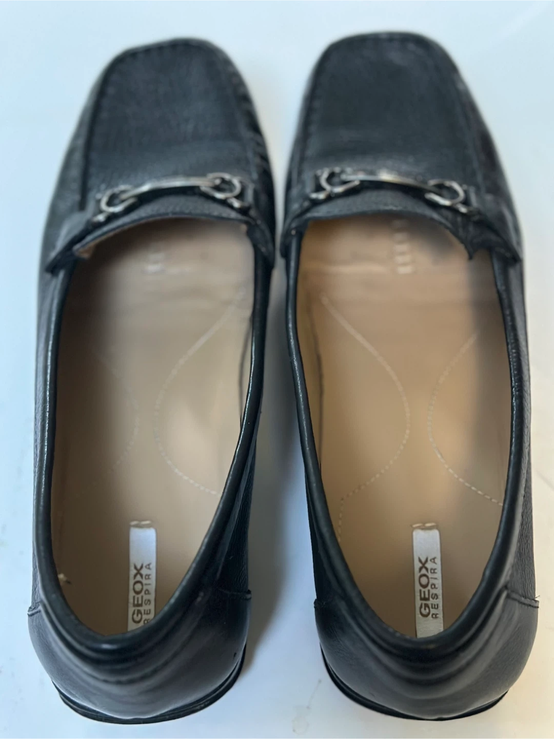 In pristine preloved condition Stylish GEOX loafers in black leather -ladies Size : EUR 39.5 / US 8.5 These shoes have been meticulously cleaned and sanitized. From a smoke free, pet free home. Pick up in Alta Vista.