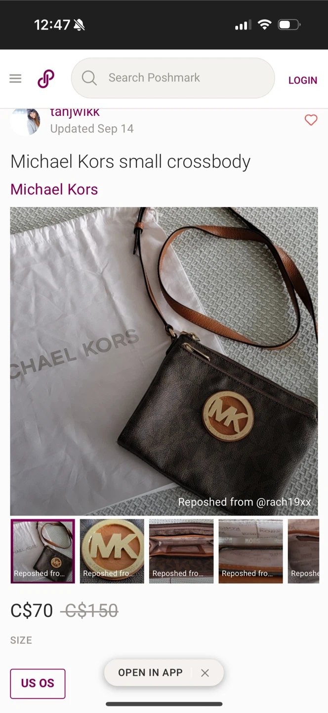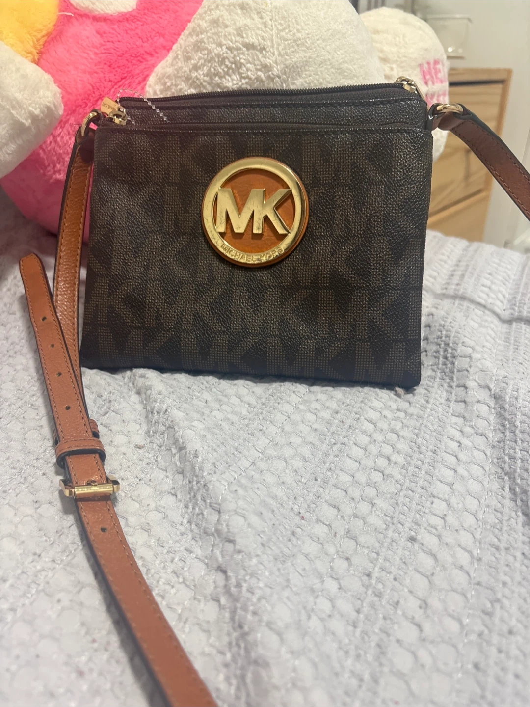 Selling a Michael Kors small crossbody bag! It's in great condition and features the classic MK logo. The screenshot shows it listed for $70.