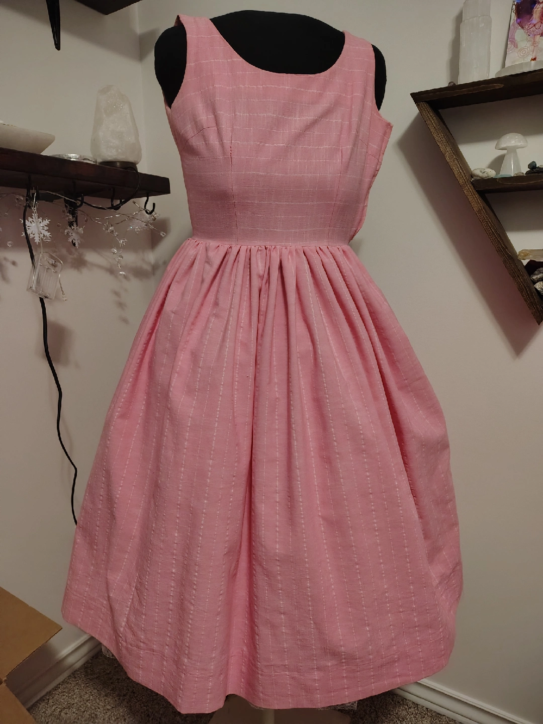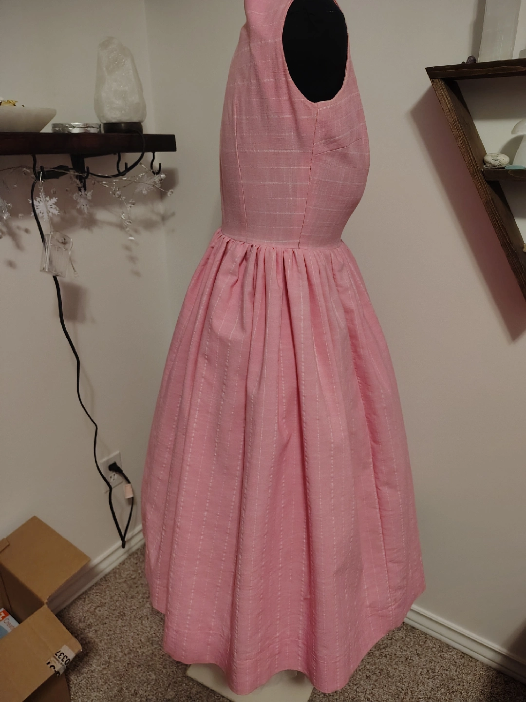 Selling a pretty pink dress that comes with a tulle crinoline! It's in great condition and ready for a new home. the crinoline has a lining so no itchiness when wearing! crinoline and pink dress have a bit of stretch but would fit xs-small best. all custom and handmade, worn twice but kept in good care.