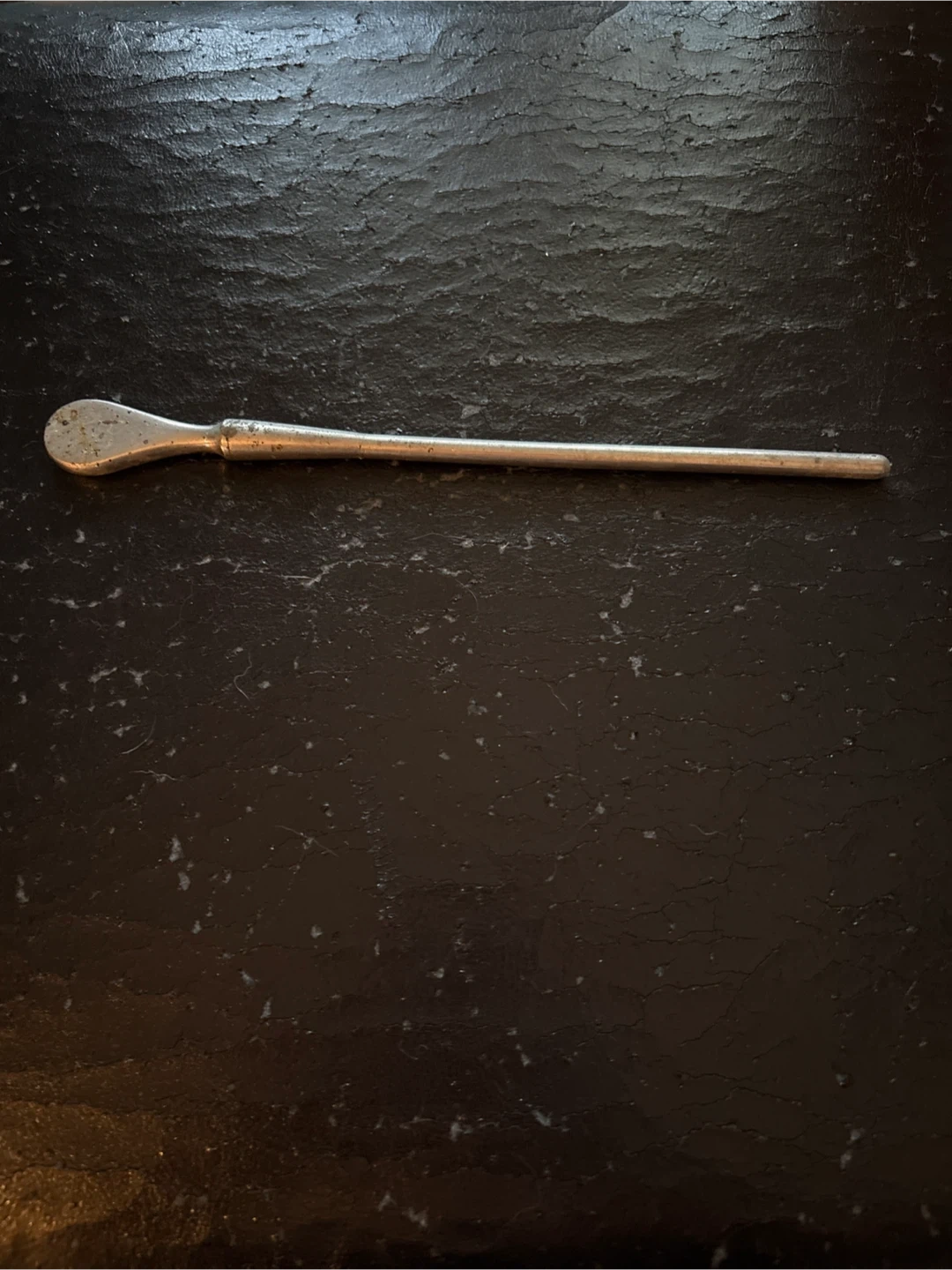 Selling a metal spoon/straw combo. It's in used condition and could be used for various purposes, like stirring beverages or scooping small amounts of ingredients