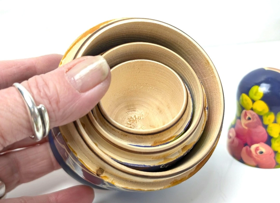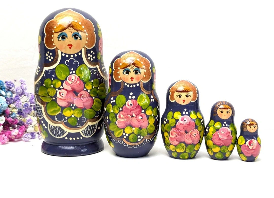 Beautiful hand painted nesting dolls. Set of 5 stackable dolls. Each opens up to a new wooden doll. Measures approximately 7 inches in height. Good vintage condition. Very collectible. π PICK UP TOWNLINE HWY 2 AREA π CASH is preferred please βΊοΈ Thanks for looking π©΅