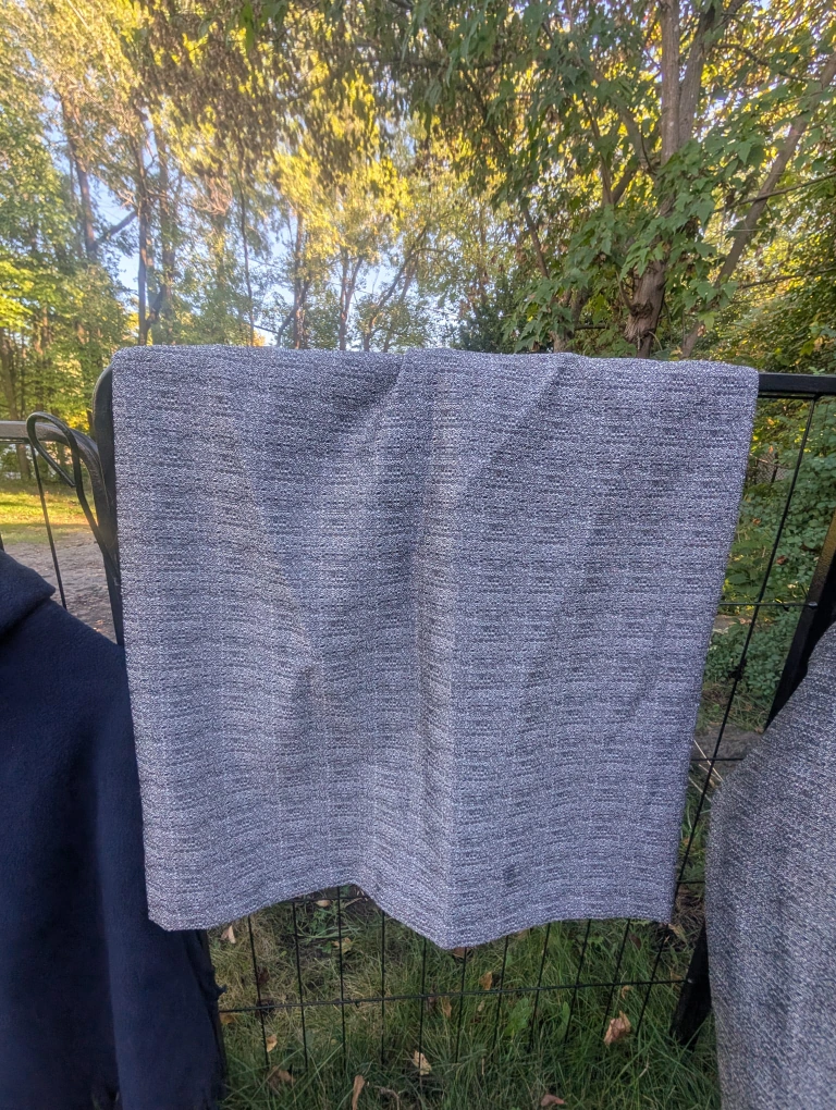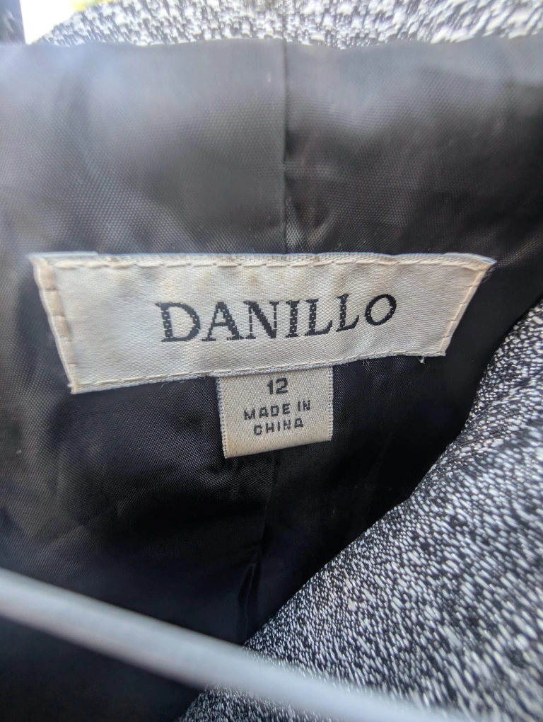 Selling a Danillo blazer and skirt suit in a women's size 12. The suit is a stylish grey and black tweed-like material. Perfect for the office or a special occasion!