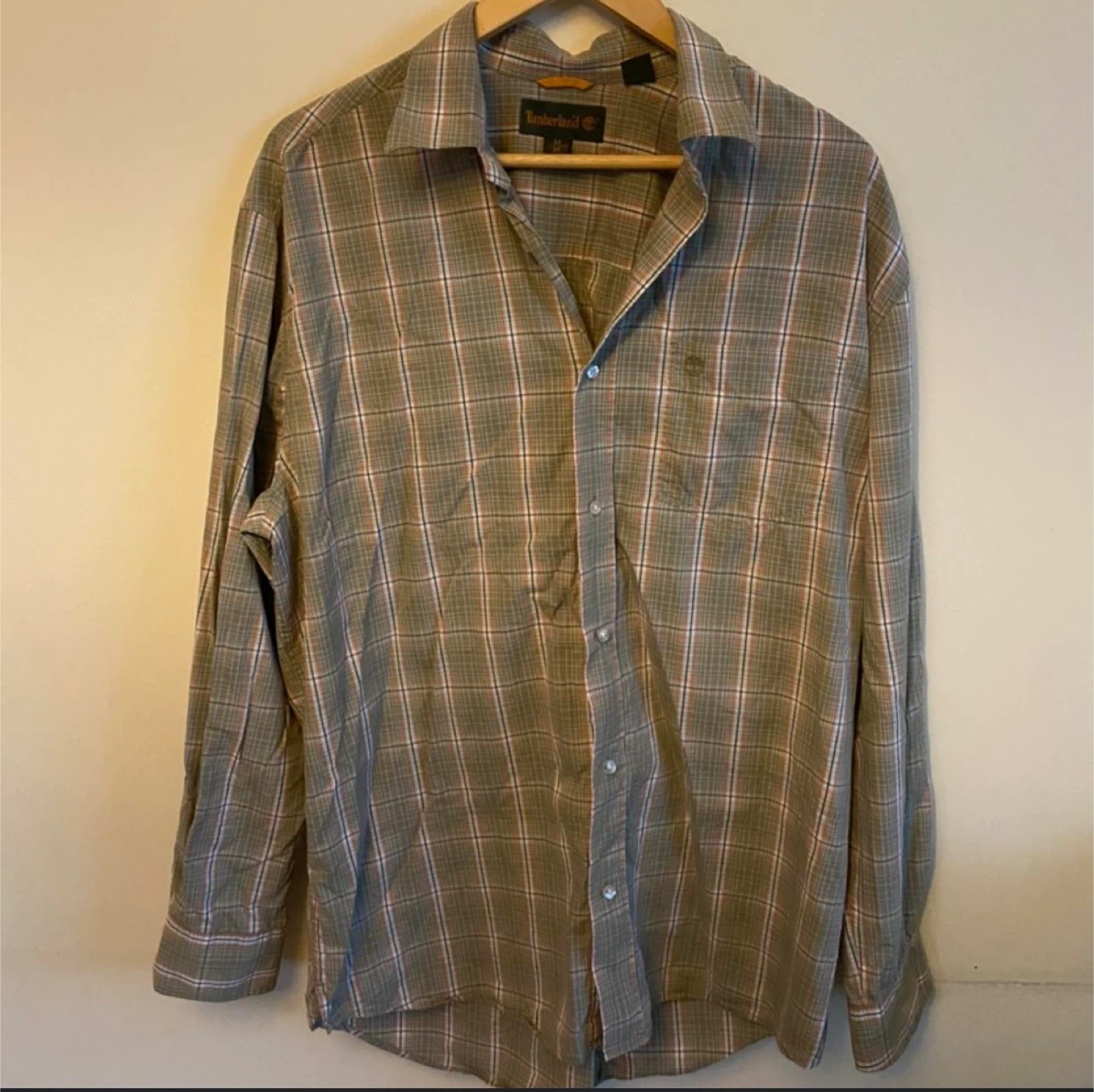 Selling a Timberland plaid button-down shirt in size L. It's in great condition and perfect for a casual look!
