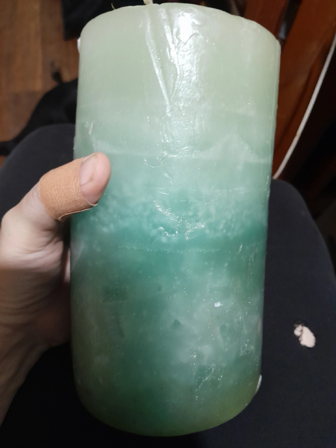 Selling a green ombre pillar candle! It has some signs of use, as pictured, but still has plenty of burn time left. Perfect for adding a cozy vibe to any room 2 candles included