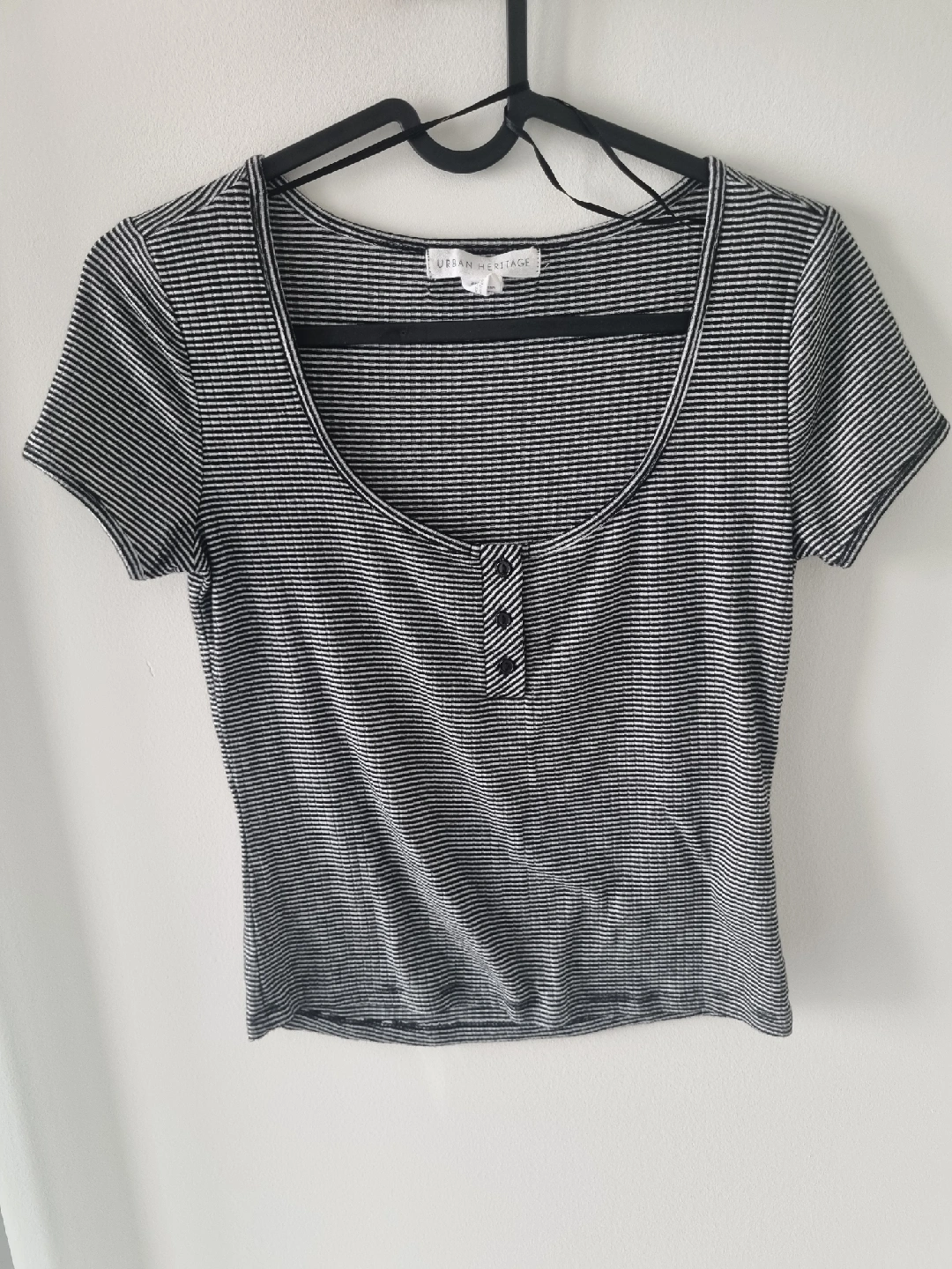 A cute Urban Heritage cropped top in a black and white stripe pattern! It's a size small and perfect for everyday wear. Size: S Willing to give black scrunchie headband with this for free if u ask!