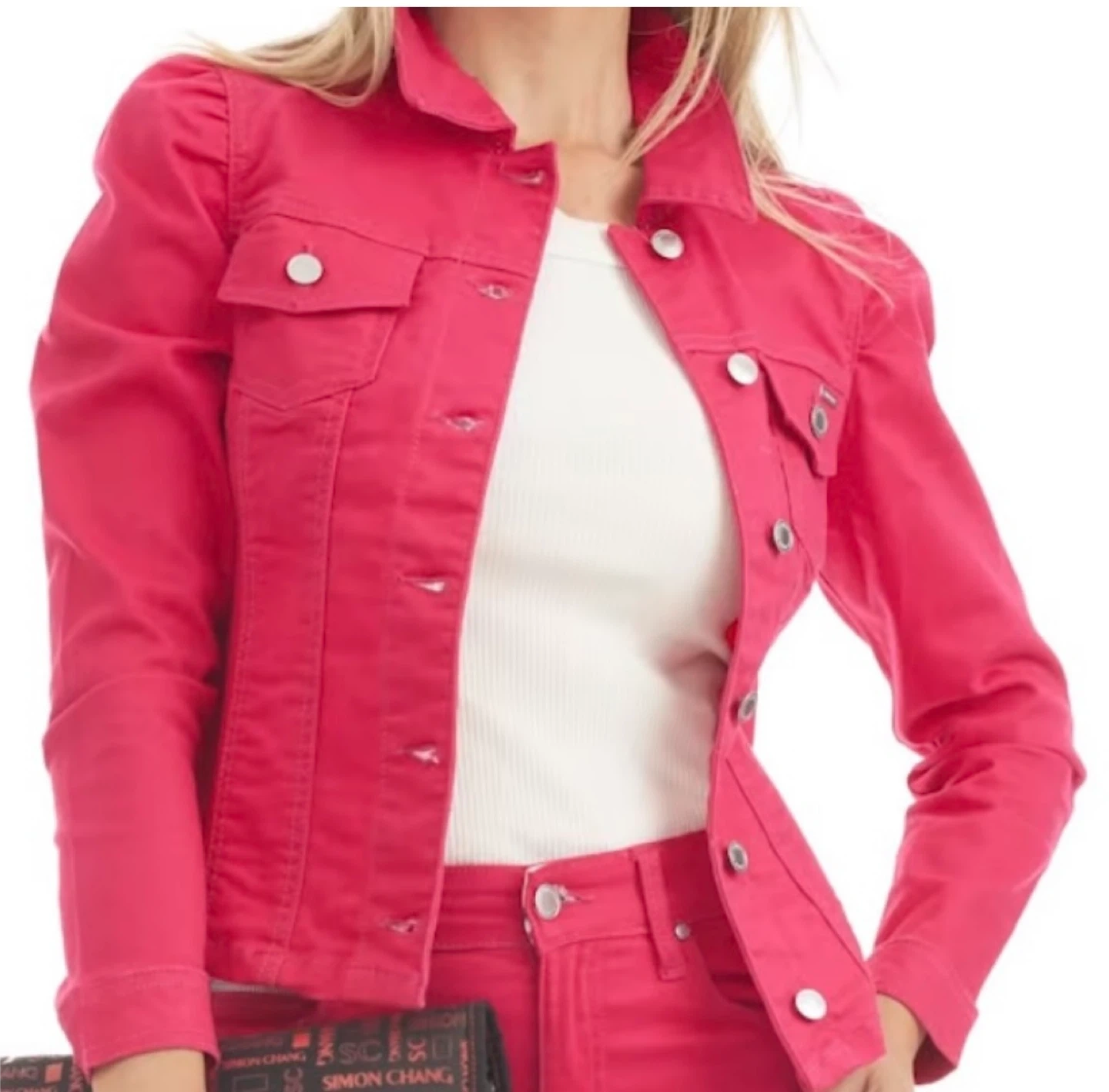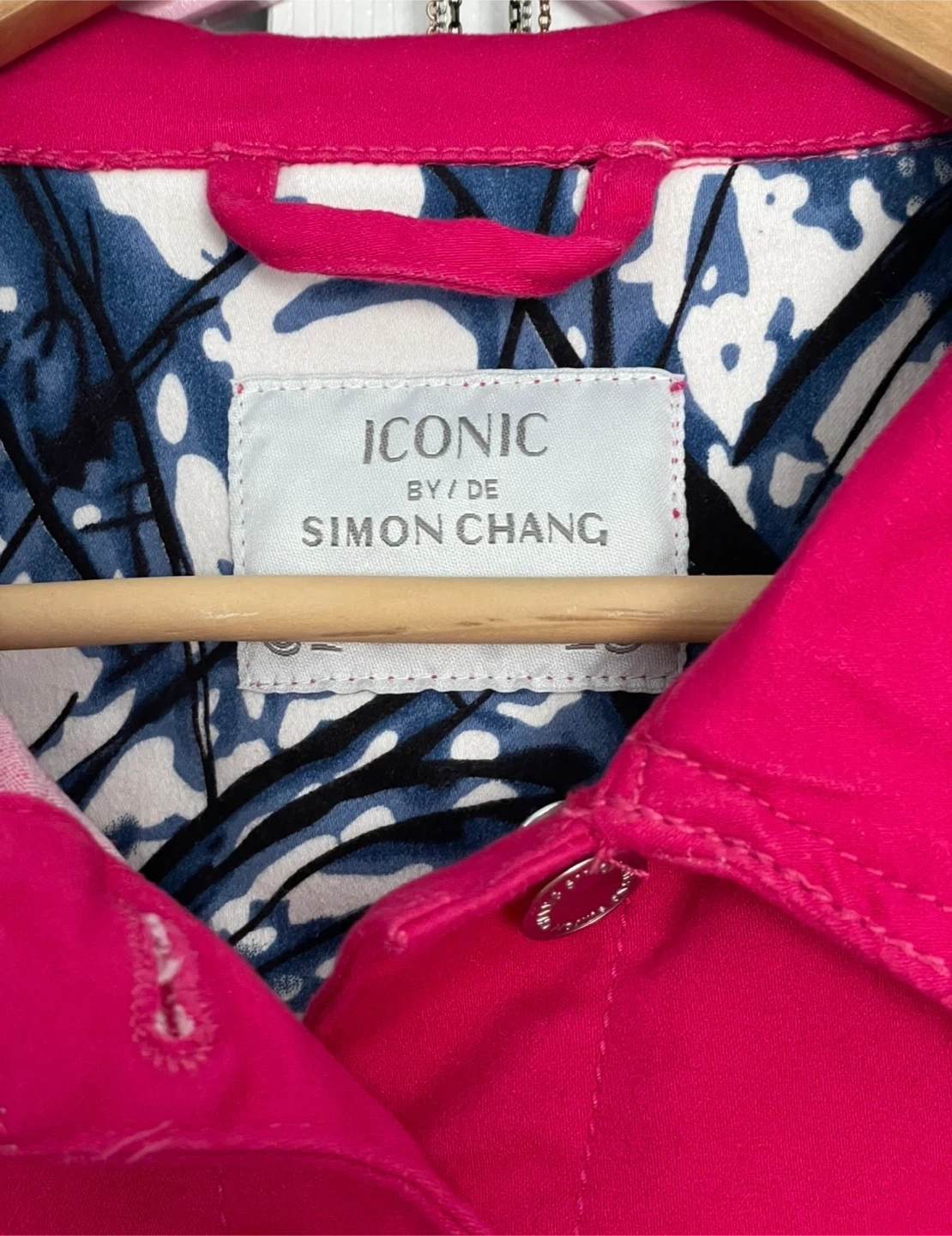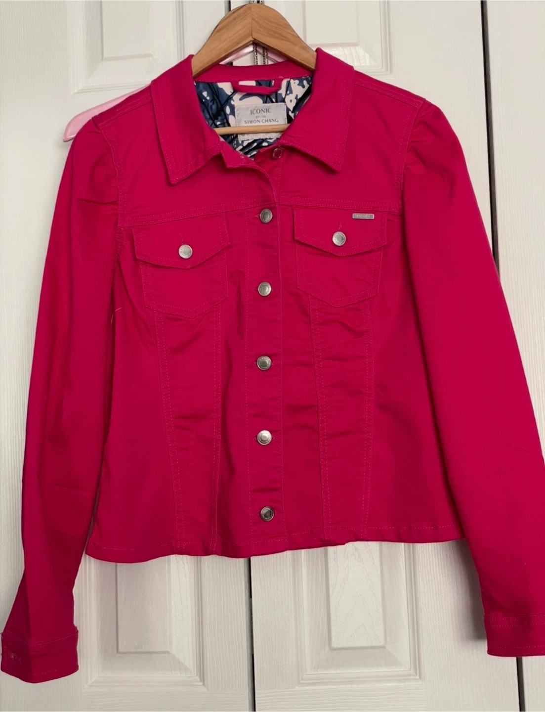 Selling a Simon Chang Iconic jacket in a vibrant pink colour! It's in great condition and features a stylish design. Perfect for adding a pop of colour to your wardrobe!
