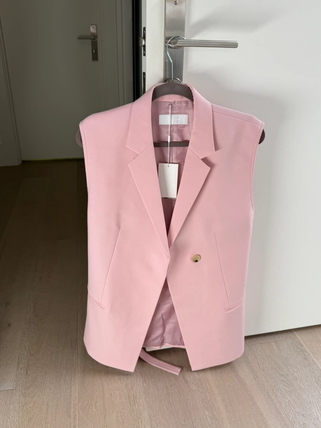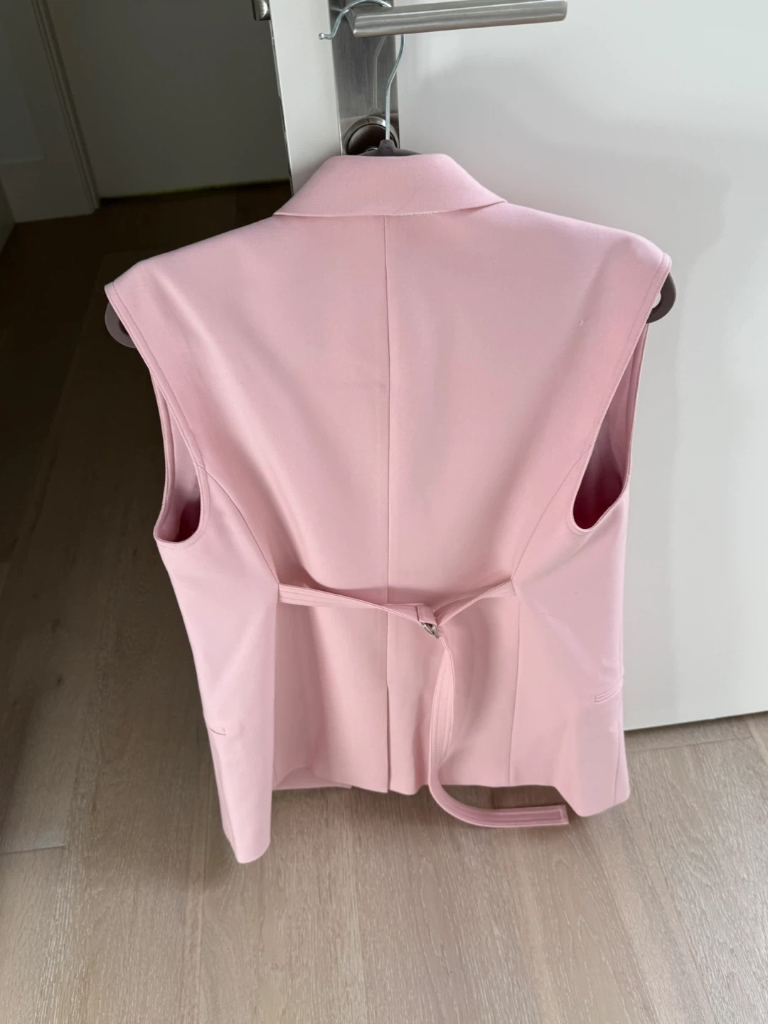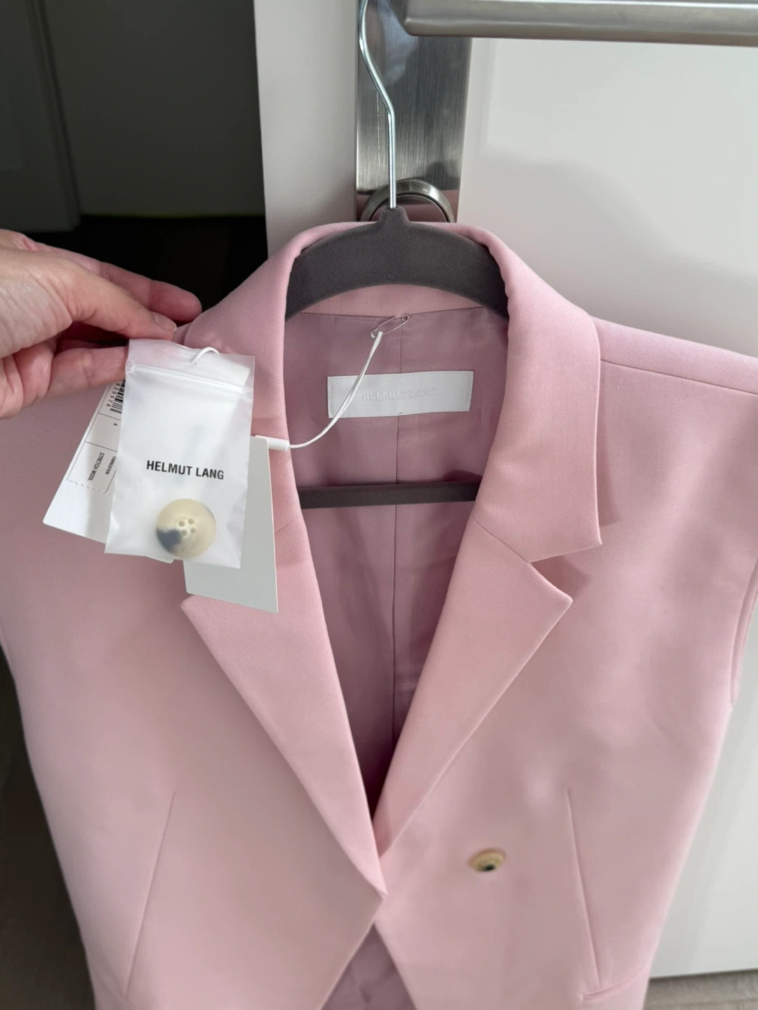 Selling a stylish Helmut Lang sleeveless blazer in a lovely pink colour. It's in great condition and ready to add a touch of sophistication to your wardrobe! Perfect for layering or wearing on its own, this blazer is a versatile piece.