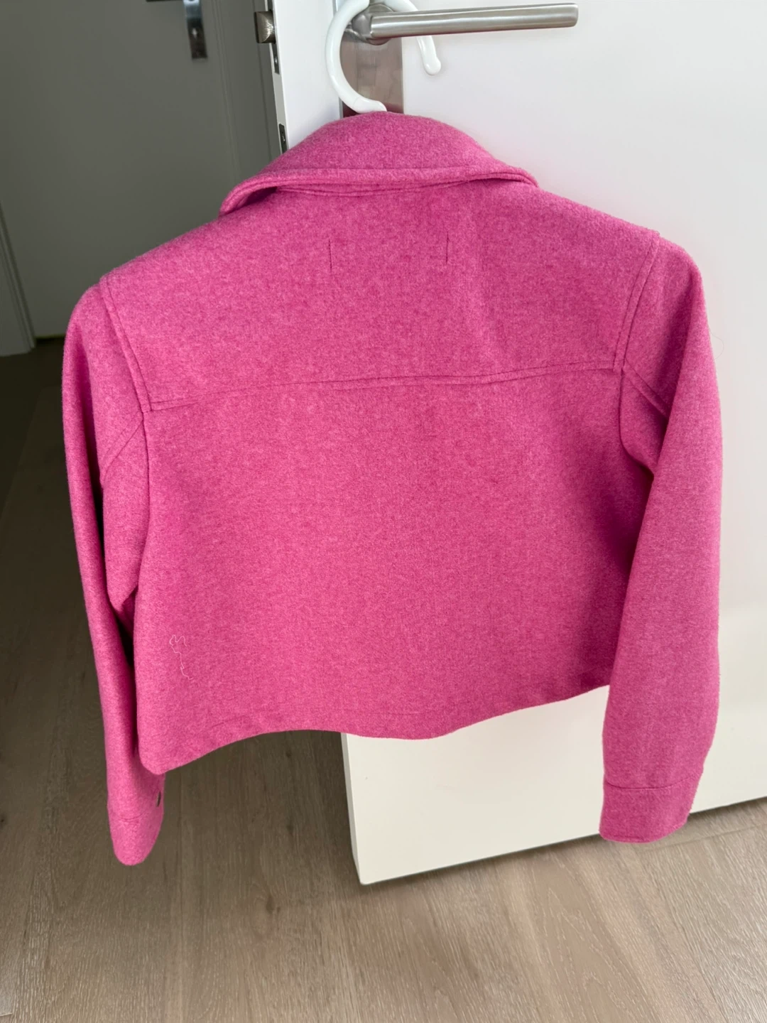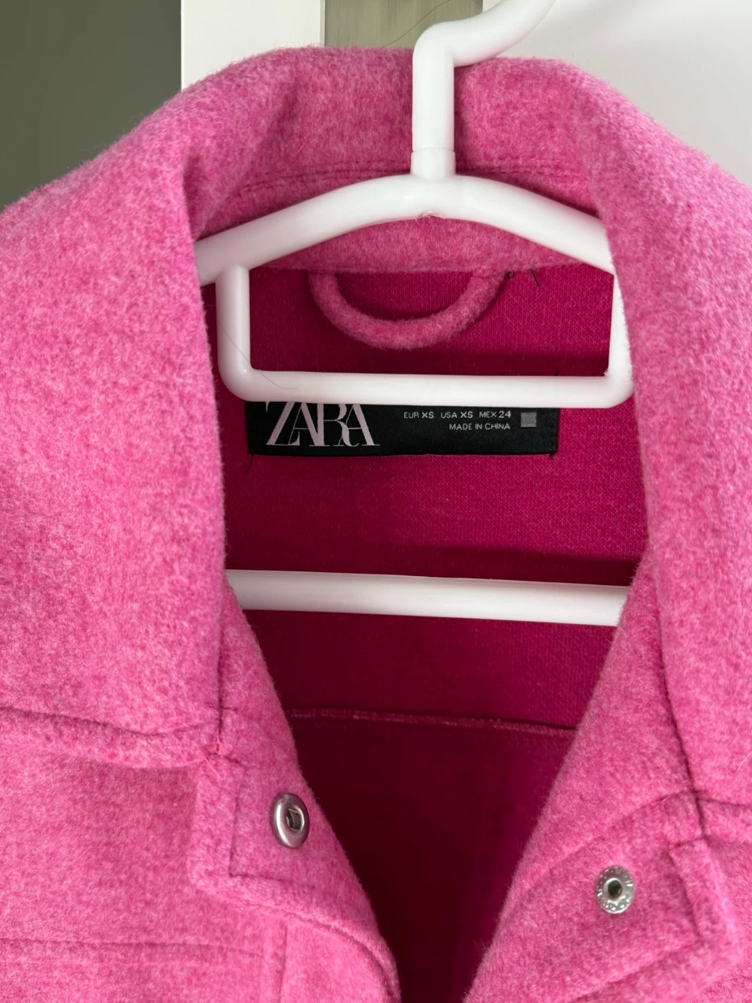 Selling a cute Zara cropped jacket in a vibrant pink colour! It's made of a wool blend and is a size XS. Perfect for adding a pop of colour to your wardrobe!