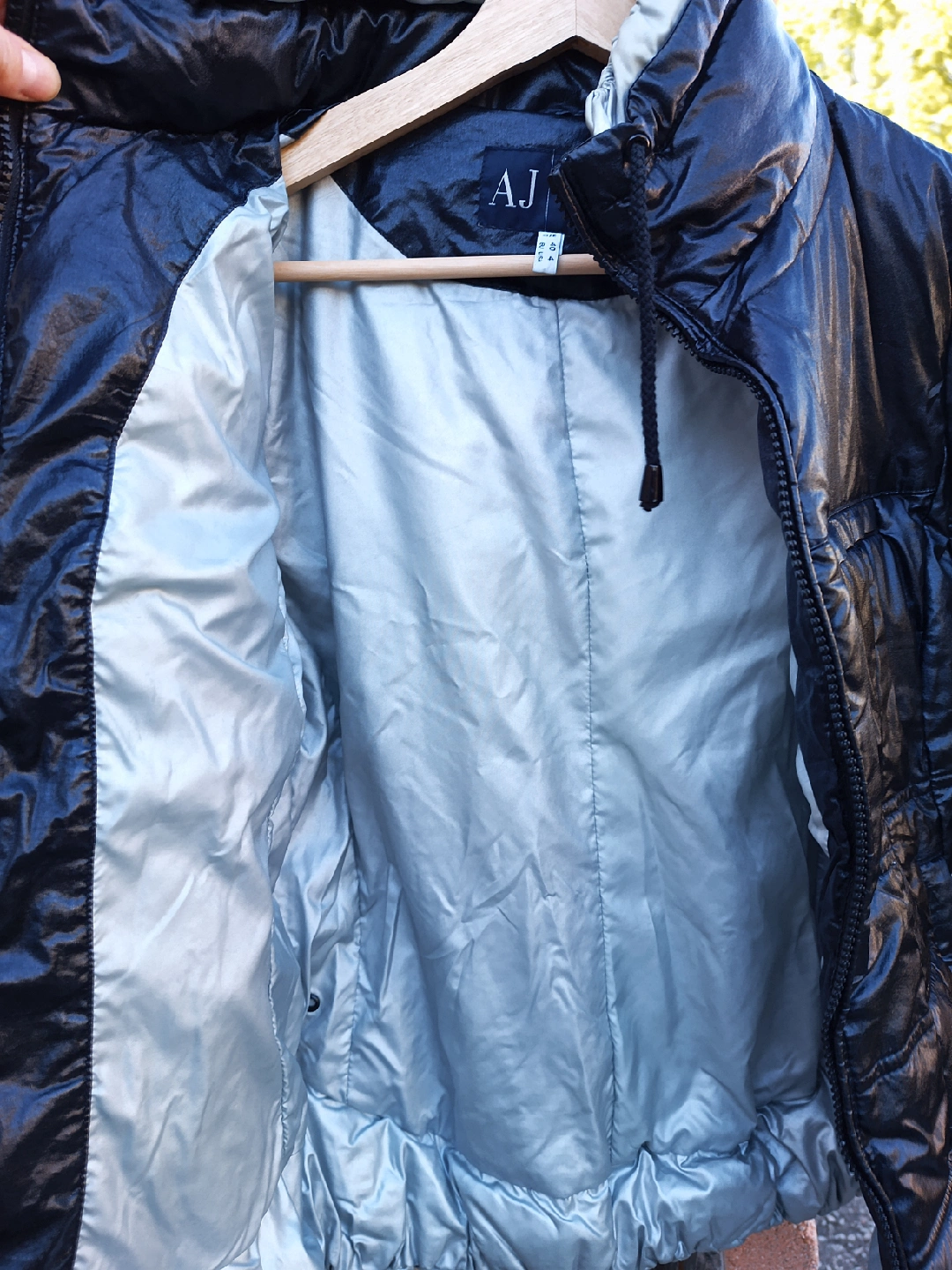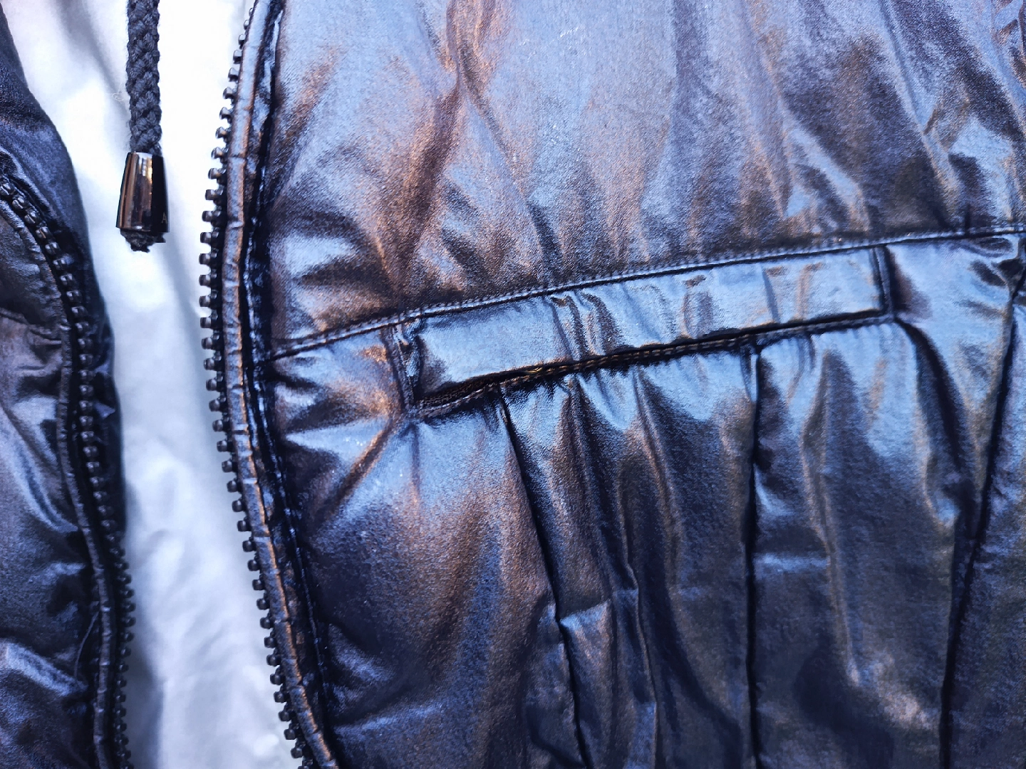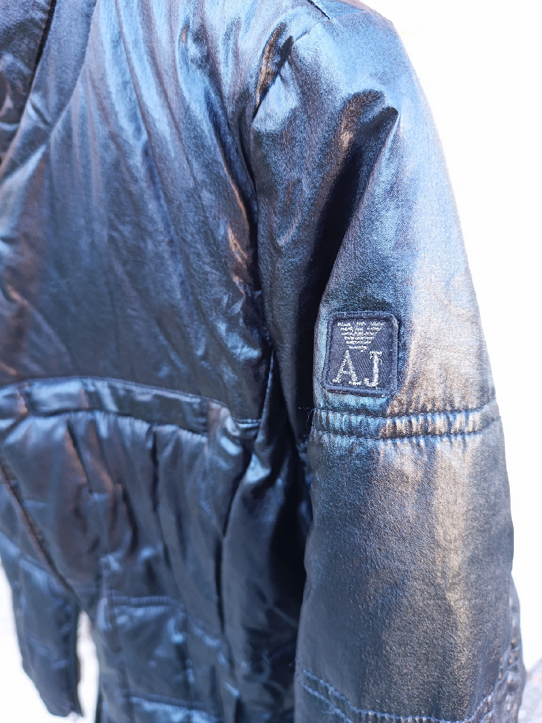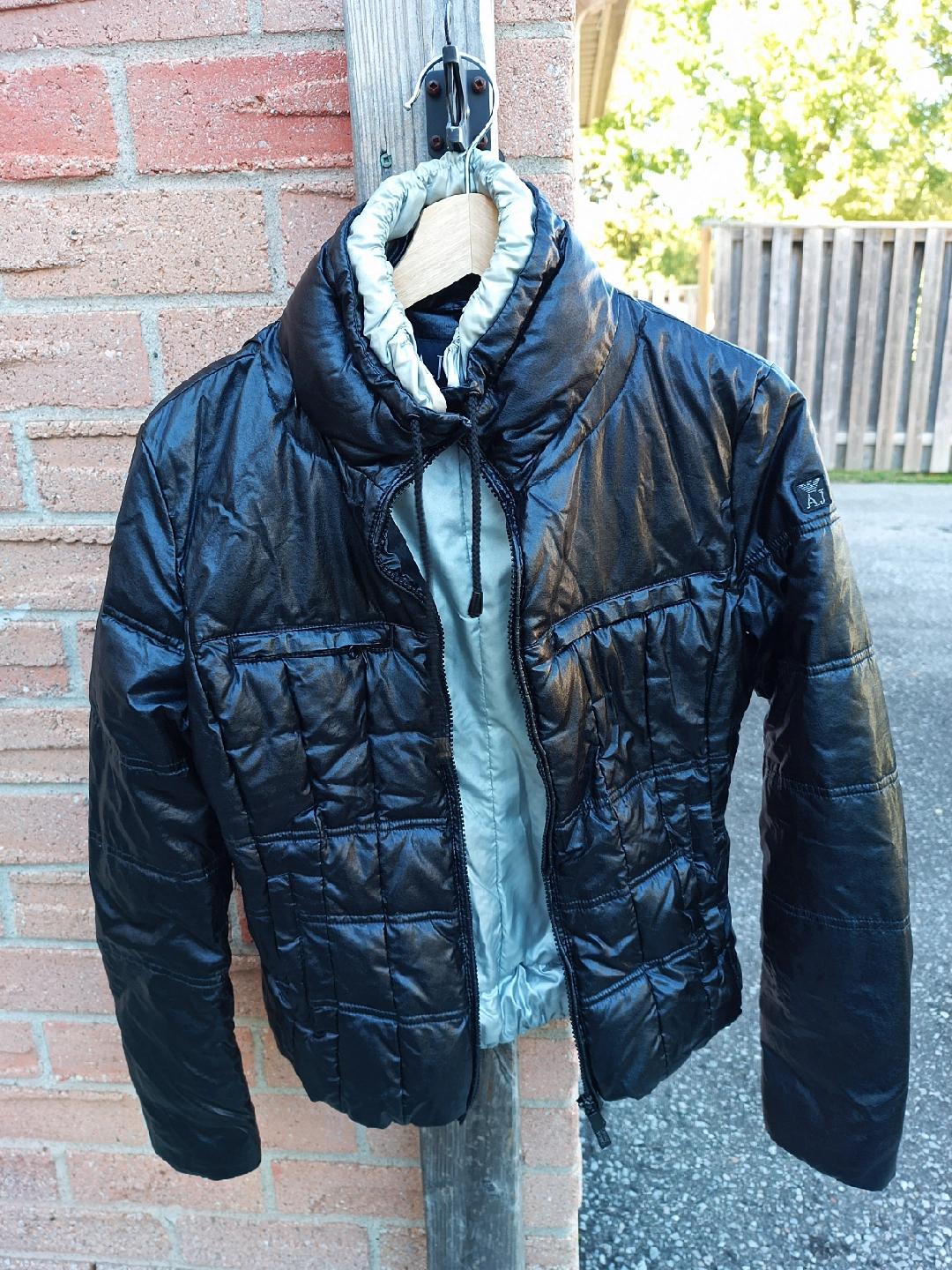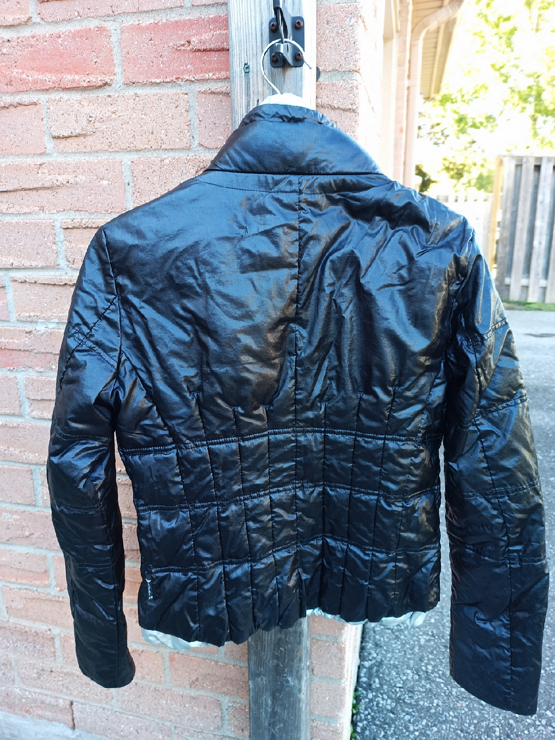 Black and silver fall/winter slightly puffy jacket, worn but good condition, casual wear.