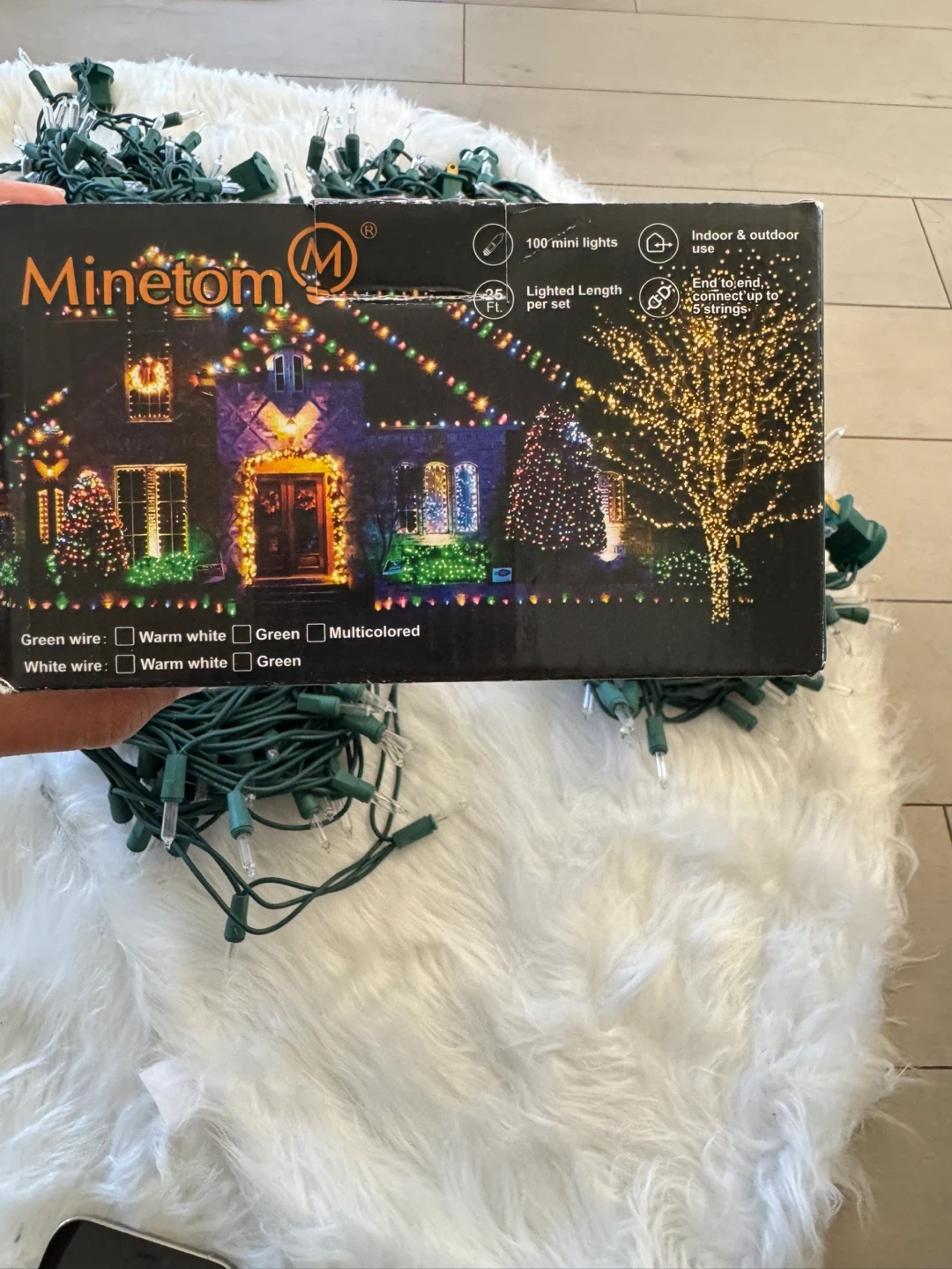 $15 each. Used for one Christmas tree and covers a 7feet tall tree completely. Selling 4 sets of mini string lights! It comes with 100 mini lights and has a lighted length of 25 feet. These lights are suitable for both indoor and outdoor use. You can connect up to 5 strings end to end! Great for adding a cozy touch to any space