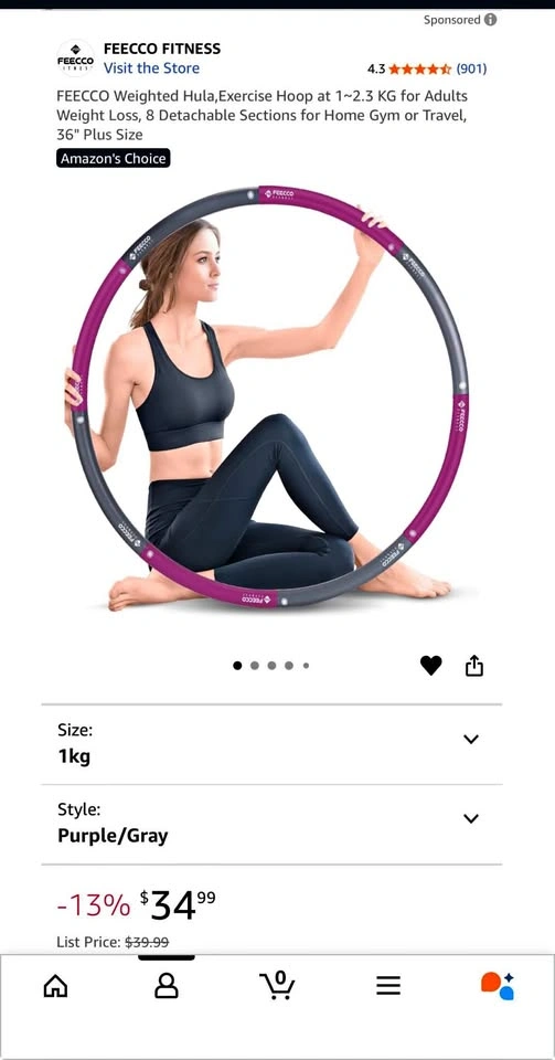 Item is available as long as the listing is up. FEECCO Weighted Hula, Exercise Hoop at 1~2.3 KG for Adults Weight Loss, 8 Detachable Sections for Home Gym or Travel, 36" Plus Size