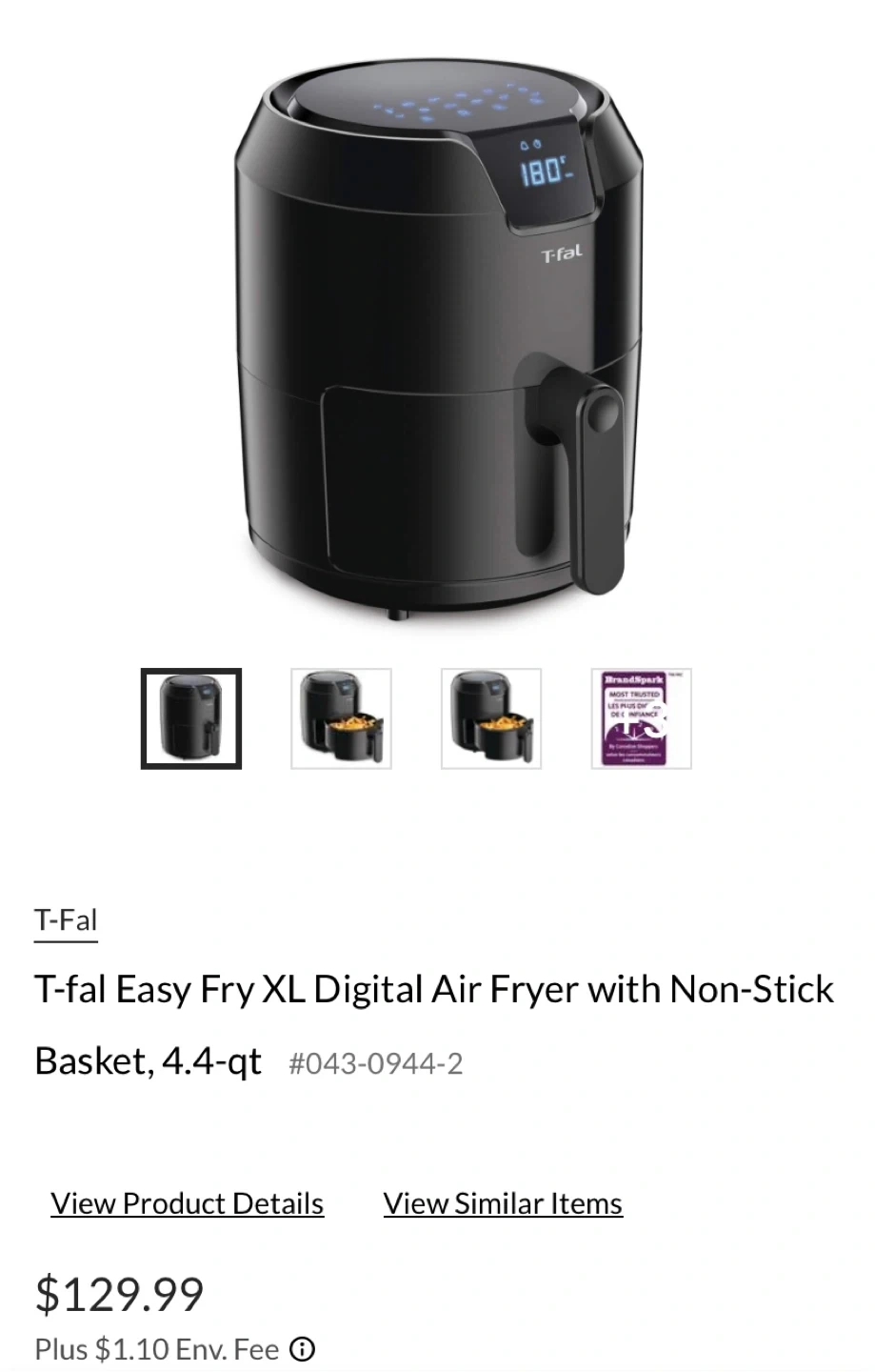 Selling a T-fal Easy Fry XL Digital Air Fryer with a non-stick basket. It has a 4.4 qt capacity. Retails for $129.99.
