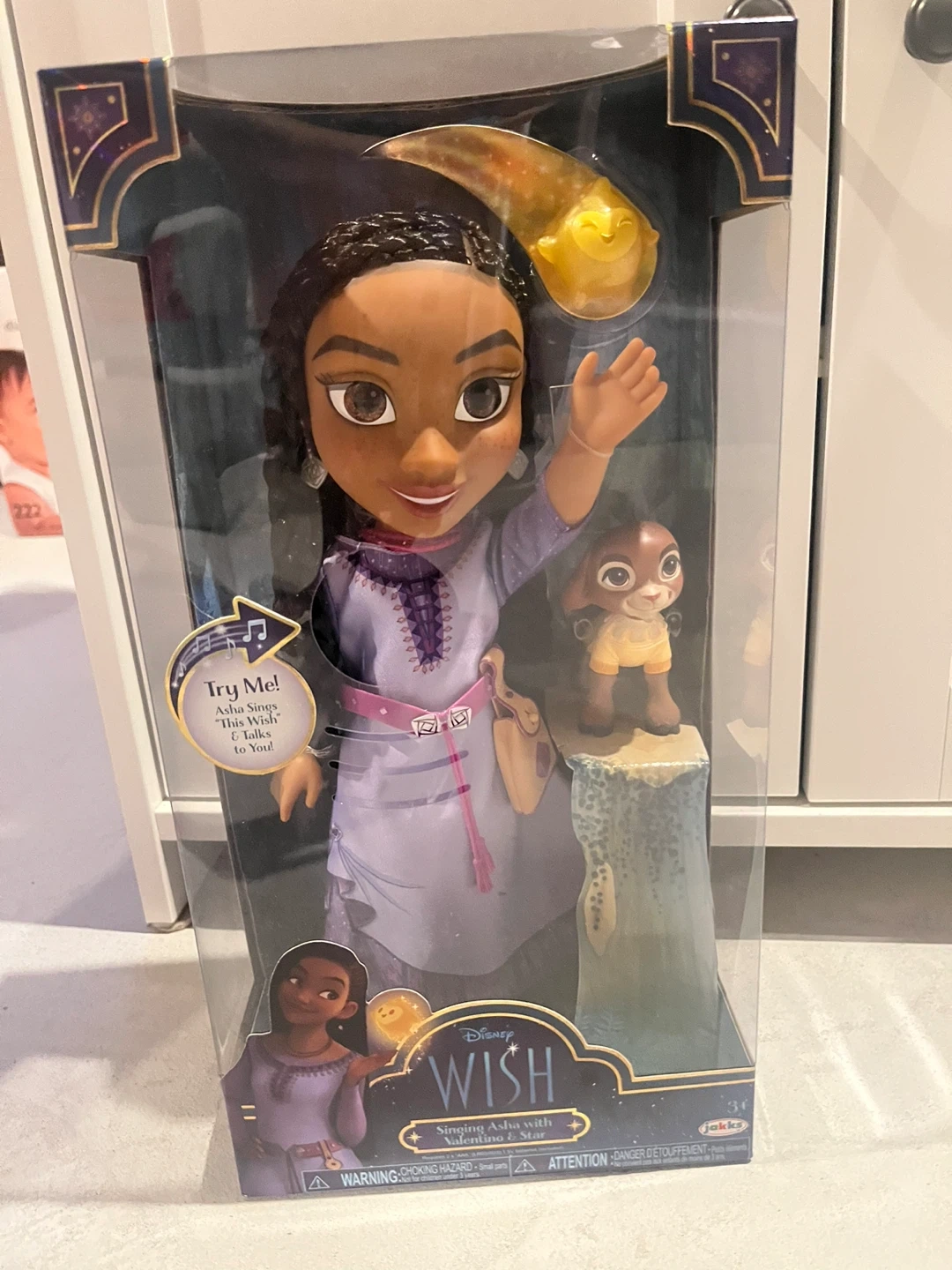 Selling a brand new Disney Wish Singing Asha doll, complete with Valentino and Star! Asha sings "This Wish" and talks to you when you press the button. Comes in the original packaging!