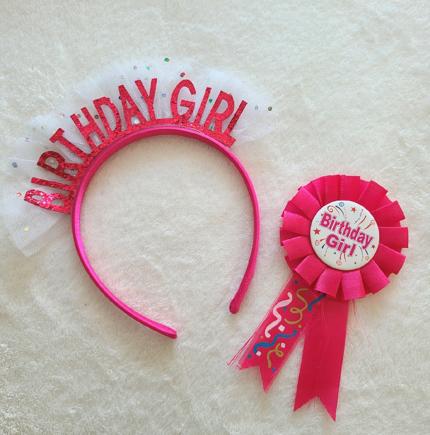 Perfect for a birthday celebration. The headband is pink with white tulle and sparkly red lettering. The rosette is also pink with a 'Birthday Girl' button and colourful ribbons. Flashing Cake Decoration.