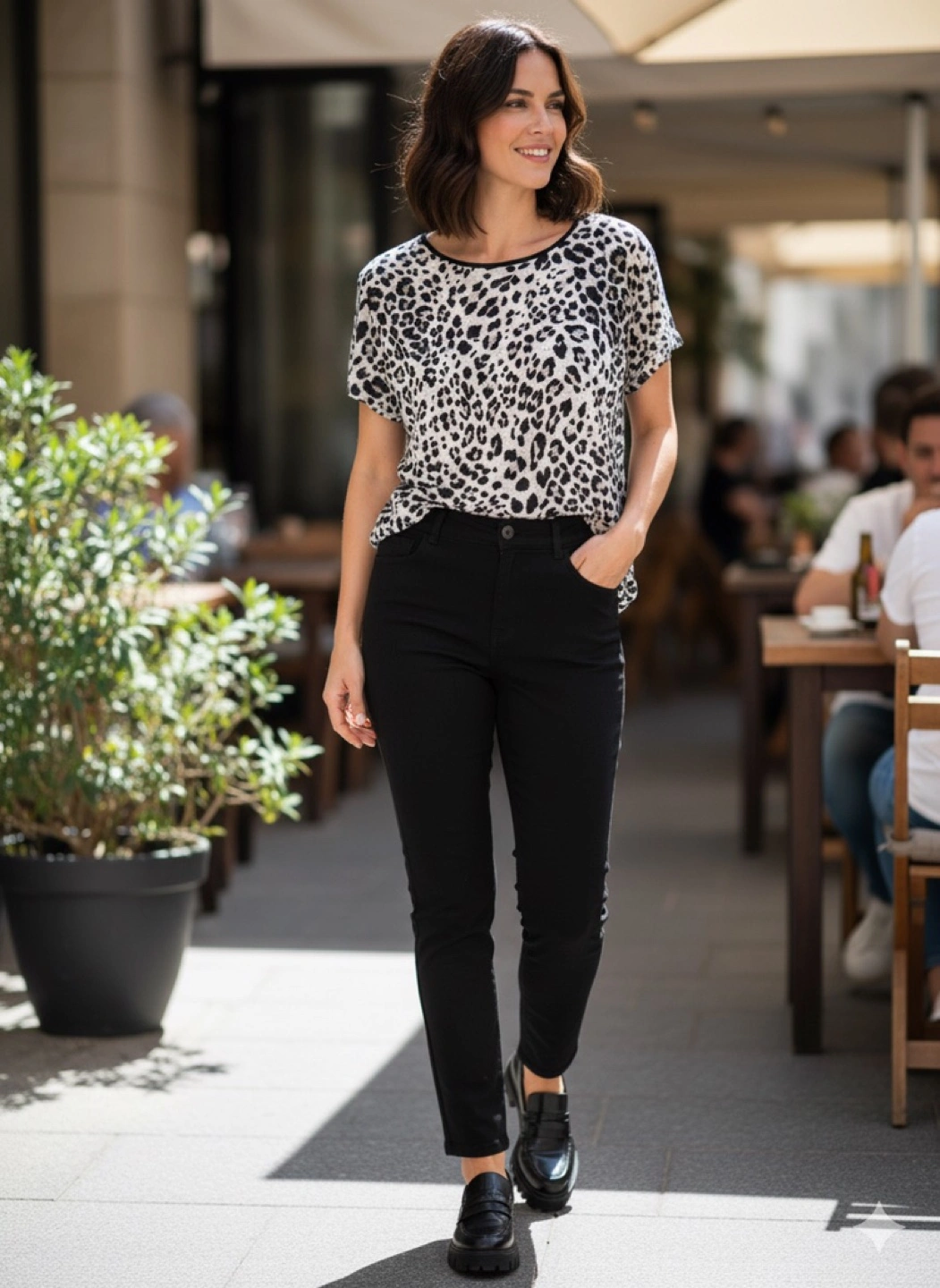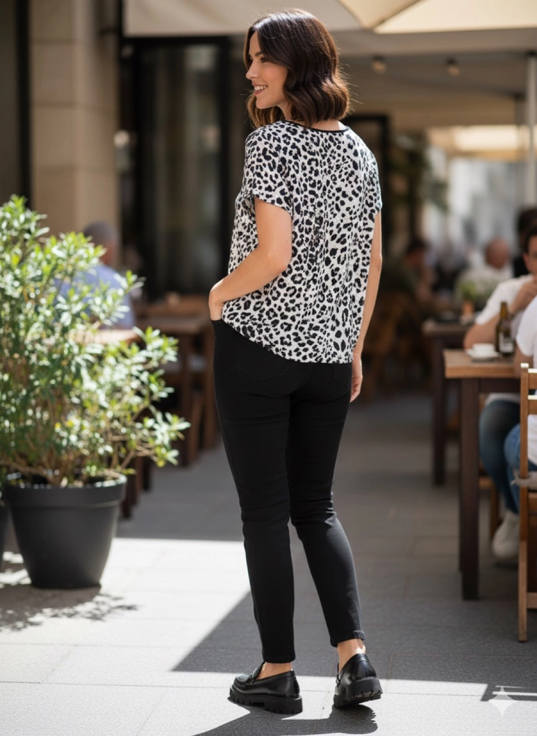 Make a bold statement with this breezy, lightweight 100% linen top by Massimo Dutti. Features a fun leopard print, short sleeves and contrast trim at neckline. Size L but fits closer to M. Excellent condition- no stains or damages.