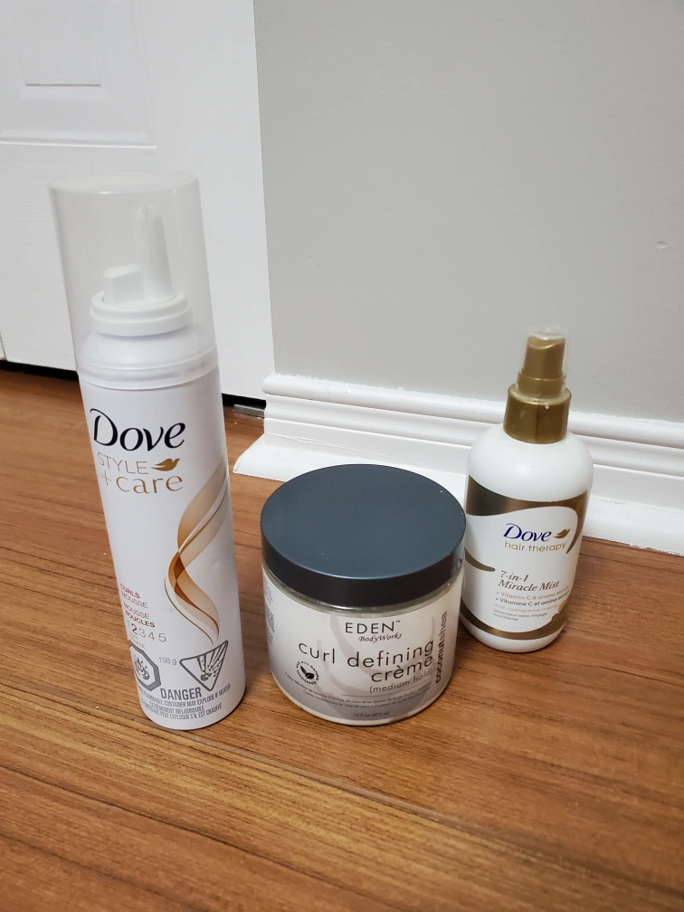 Selling a few hair products: Dove Style+Care curls mousse, Eden BodyWorks curl defining creme (medium hold), and Dove hair therapy 7-in-1 miracle mist