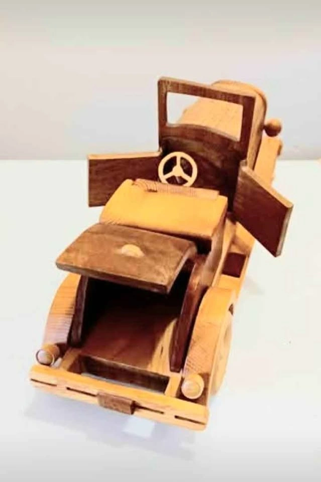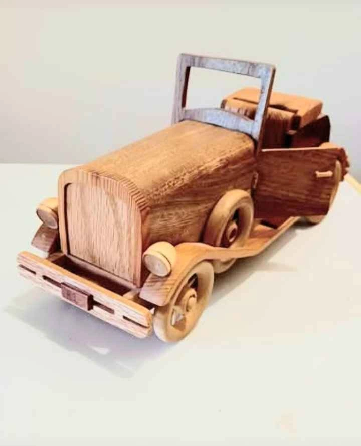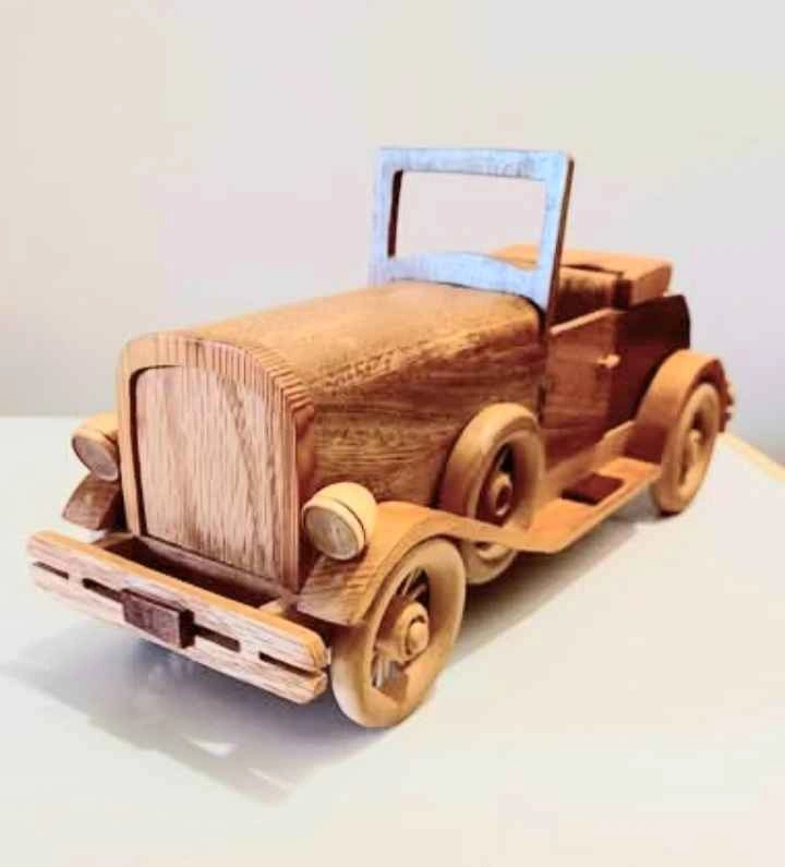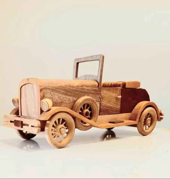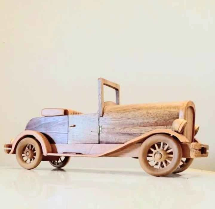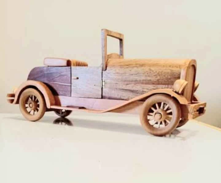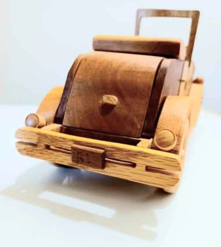 Collectible,Rare 1929 Ford T Wood Model Car. Hand-Crafted Wooden Model Entirely Constructed from Wood, showcasing Natural Wood Grain and a Polished Finish. Design: It features details such as a Hinged Trunk Lid, Opening Doors, and visible wheel Spokes, Mimicking the design of Classic Cars Household Table, Desk, Shelf Decor or a Toy. Length : 14.50 inches Please check out my other rare items!