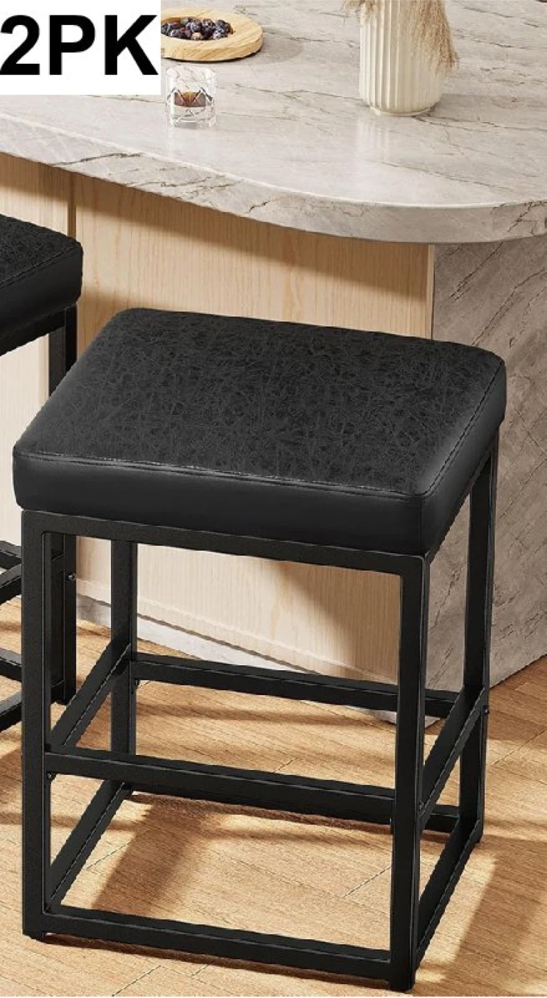 Selling a set of two black bar stools! They have a sleek, modern look with a comfortable padded seat and sturdy metal frame. Perfect for adding extra seating to your kitchen island or home bar