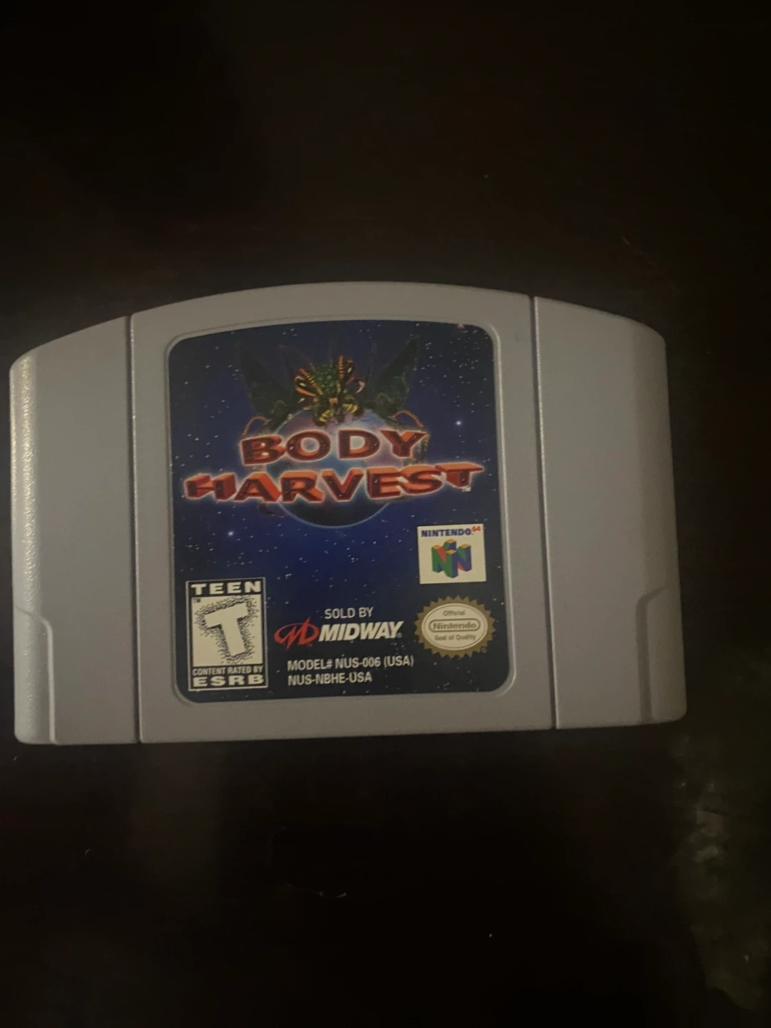 Selling a Body Harvest game for the Nintendo 64! Rated Teen and sold by Midway.