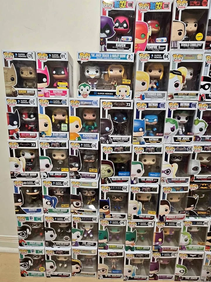 Assorted DC Funko Pops. Prices below. Willing to make a deal on multiples. Pickup is Hillcrest Mall, cash only. Could potentially meet else, just ask. Black Canary: $20 Power Girl: $20 Catwoman #53: $20 Poison Ivy AA: $20 Killer Croc AA: $20 The Joker AA Purple: $25 Harley Quinn: $20 Scarecrow AK: $30 Harley Quinn AK: $20 Clark Kent: $20 Wonder Woman #178: $20 Aquaman: $20 Batman #71: $20 Harley Quinn #290: $20 Wonder Woman #86: $15 Mera: $10 Harley Quinn #45: $20 The Joker #146: $30 The Joker #116: $20 The Joker as Martha: $20 The Joker #36: $15 The Joker SS #107: $15 The Joker SS #109: $20 The Joker SS #96: $10 Deadshot SS: $20 Deadshot SS w/mask: $10 Harley Quinn SS Inmate: $15 Harley Quinn SS Dress: $20 Harley Quinn SS: $20 Dr. Harleen SS: $25 Killer Croc SS Hooded: $15 The Joker #06: $20 Batwoman: $15 Catwoman #43: $20 Poison Ivy #171: $10 Impopster Harley Quinn: $10 Impopster Poison Ivy: $20 Impopster Two Face: $10 Impopster The Penguin: $50 Impopster The Riddler: $15 Impopster Scarecrow: $15 Impopster Batgirl: $10 Batgirl: $15 Deathstroke: $15 Rainbow Batman: $25 Harley Quinn BOP: $15 Batman #270: $20 Oswald Cobblepot: $20 Bombshells Harley Quinn: $70 Bombshells Batgirl: $10 Bombshells Wonder Woman: $15 Wonder Woman Blue Dress: $15 Batman #111: $20 Power Girl: $15 Starfire: $50 Raven: $20 Joker Harley 2 Pack: $20 Batman Steampunk: $180 Aquaman #16: $30 Black Canary #266: $20 Batman Pink: $50 Harley Quinn #121: $15 Blackest Night Superman: $20 Harley Quinn #34: $15 Harley Quinn #34 GITD: $25 Batman #144: $15 Nightwing: $15 The Joker AA: $10 BOX DAMAGE Batman AA: $10 BOX DAMAGE Batman AA Blue: $10 BOX DAMAGE Batgirl #148: $180 Harley Quinn #66: $20