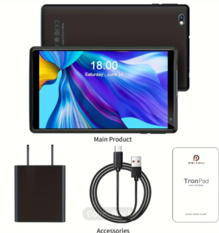 Selling a Pritom TronPad Internet Tablet. It comes with: - Power adapter - Data cable The tablet's dimensions are 20.8cm/8.18 inch in length and 12.4cm/4.88 inch in width. Comes with the original box too