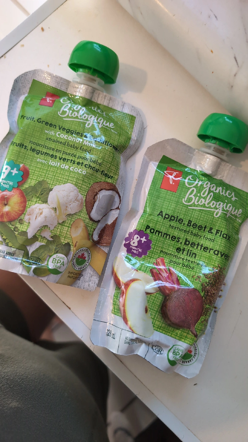 I have some PC Organics baby food pouches for sale! They're perfect for babies 8+ months. - Fruit. Green Veggies & Cauliflower with Coconut Milk - Apple, Beet & Flax Best before 2026 March 26 Pickup only St Clair East and O'Connor