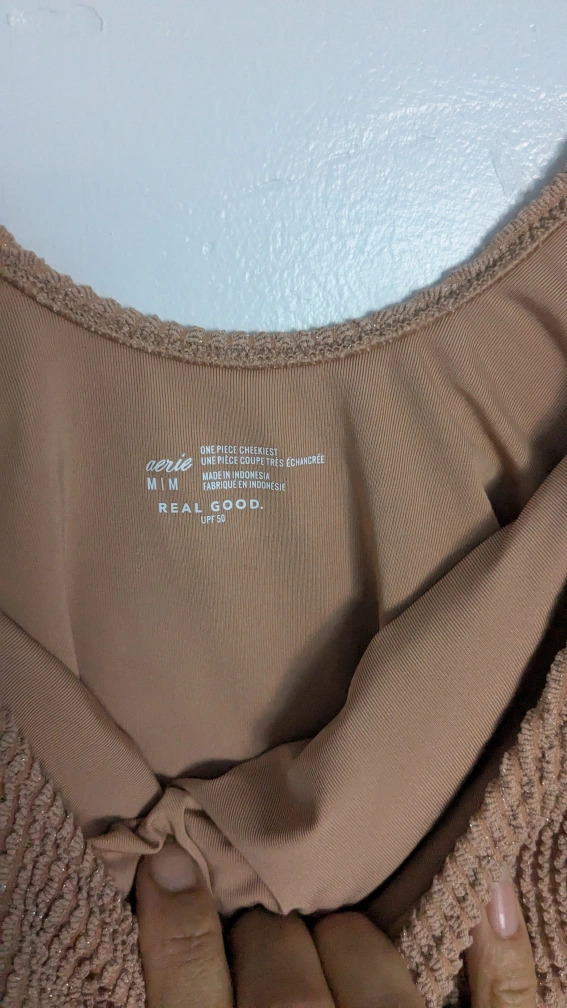 Selling a gently used Aerie one-piece swimsuit in size medium. It's in great condition and ready for summer! The swimsuit has a stylish design and comfortable fit. Perfect for the beach or pool!