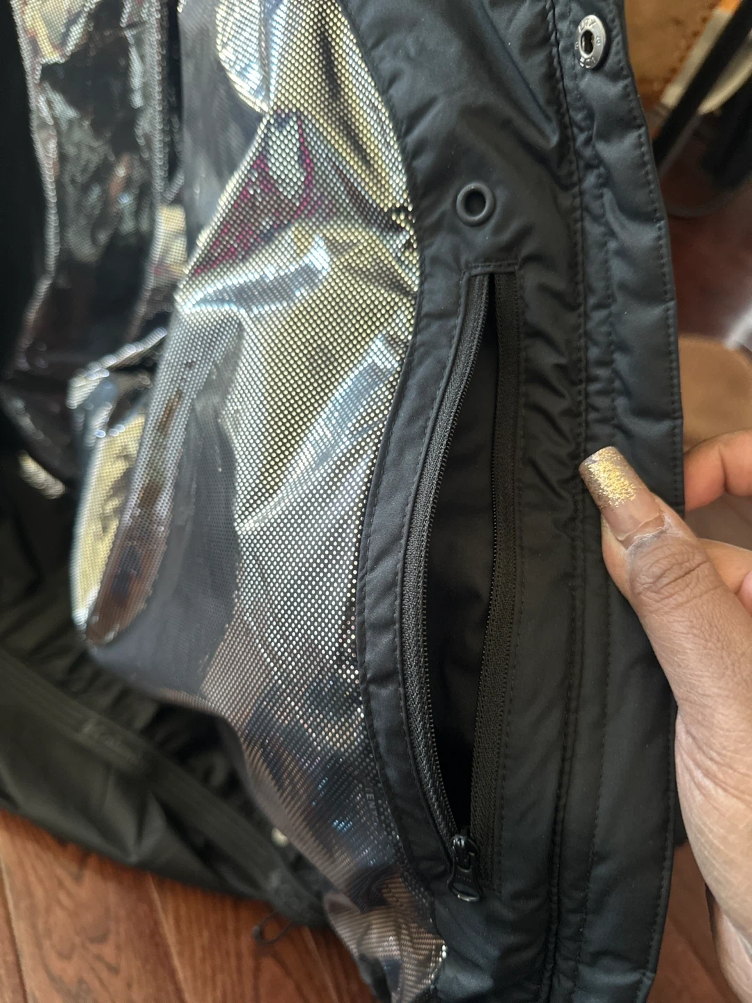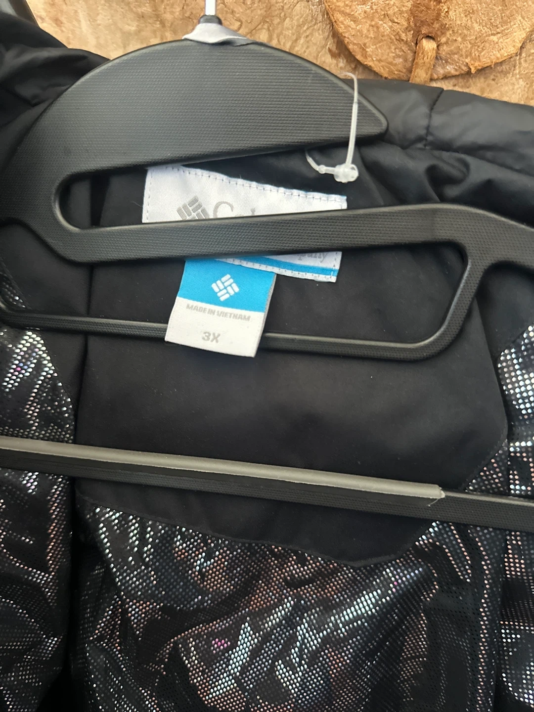 Selling a Columbia black puffer jacket in size 3X. It's in great condition and ready to keep you warm this winter! The jacket features a full zip, a hood, and a stylish silver lining.