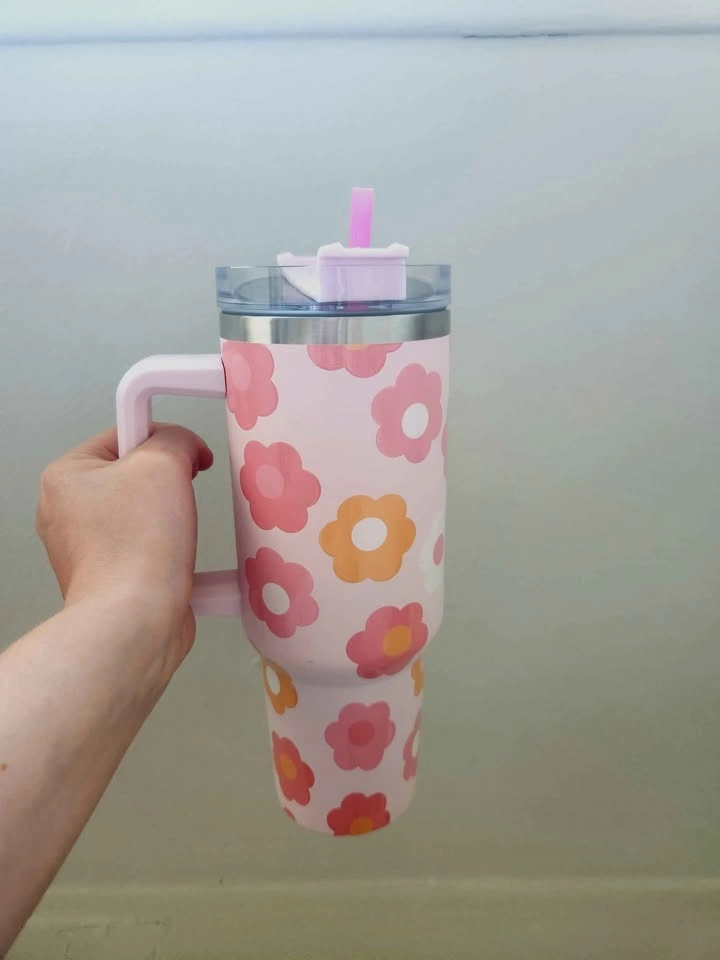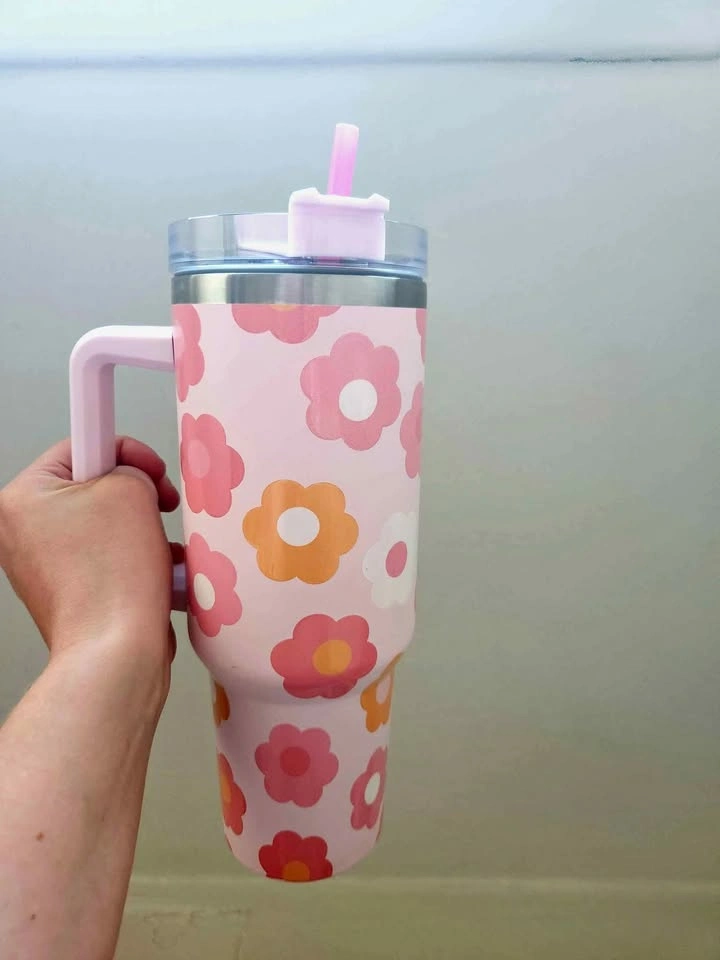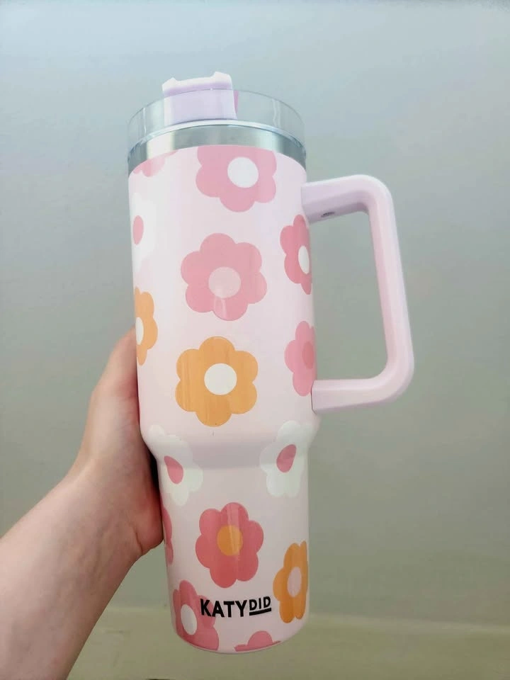 Floral design Katydid thermal/wate mug! Great for the gym, great for the car, and road trips. It's in really great condition, used only once or twice. Lid has three possible positions. It can be used with the straw, you can drink from the coffee spout and put it in a closed position to prevent spills. FYI - I just replaced the straw for the sale, so the straw itself has never been used.