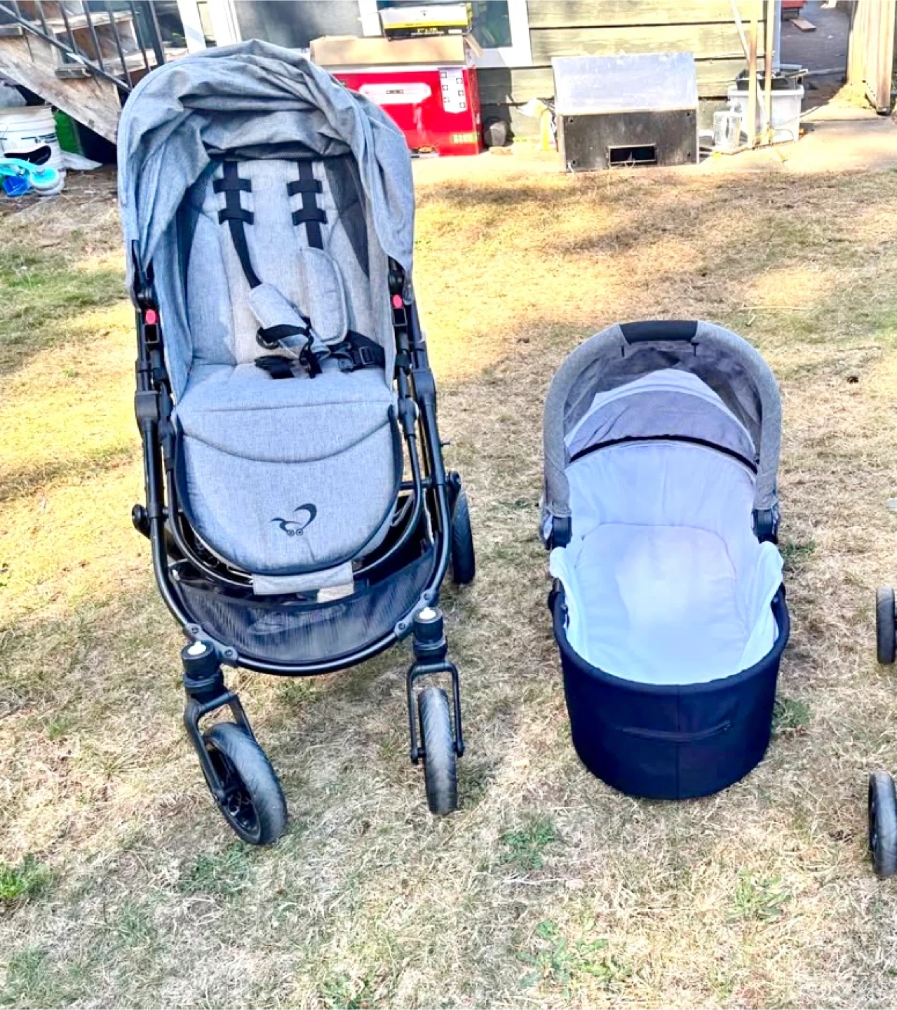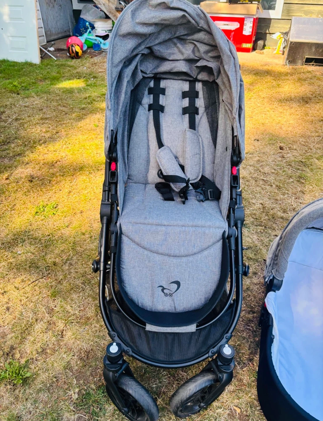 Selling cosmos stroller that comes with a bassinet. It's in great condition and ready for a new family! The stroller is a stylish grey colour, perfect for strolling around town or going for walks in the park. I used only a month so its like brand new.