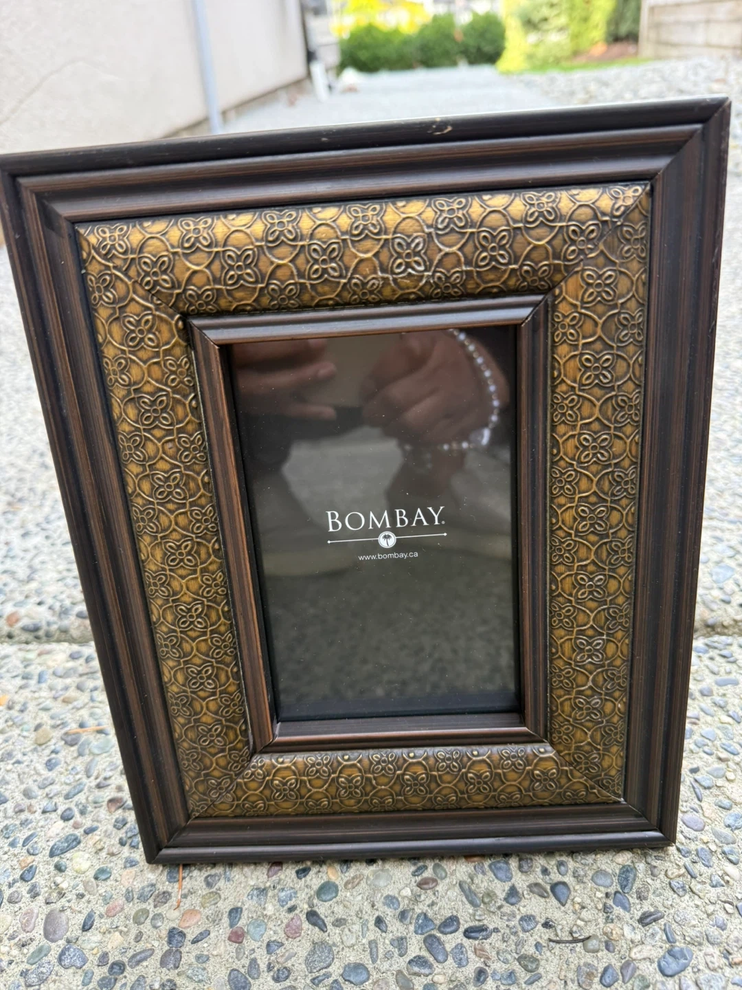 Selling a lovely picture frame from Bombay. It has a beautiful bronze and brown colour scheme with a detailed pattern on the frame itself. Perfect for displaying your favourite memories!