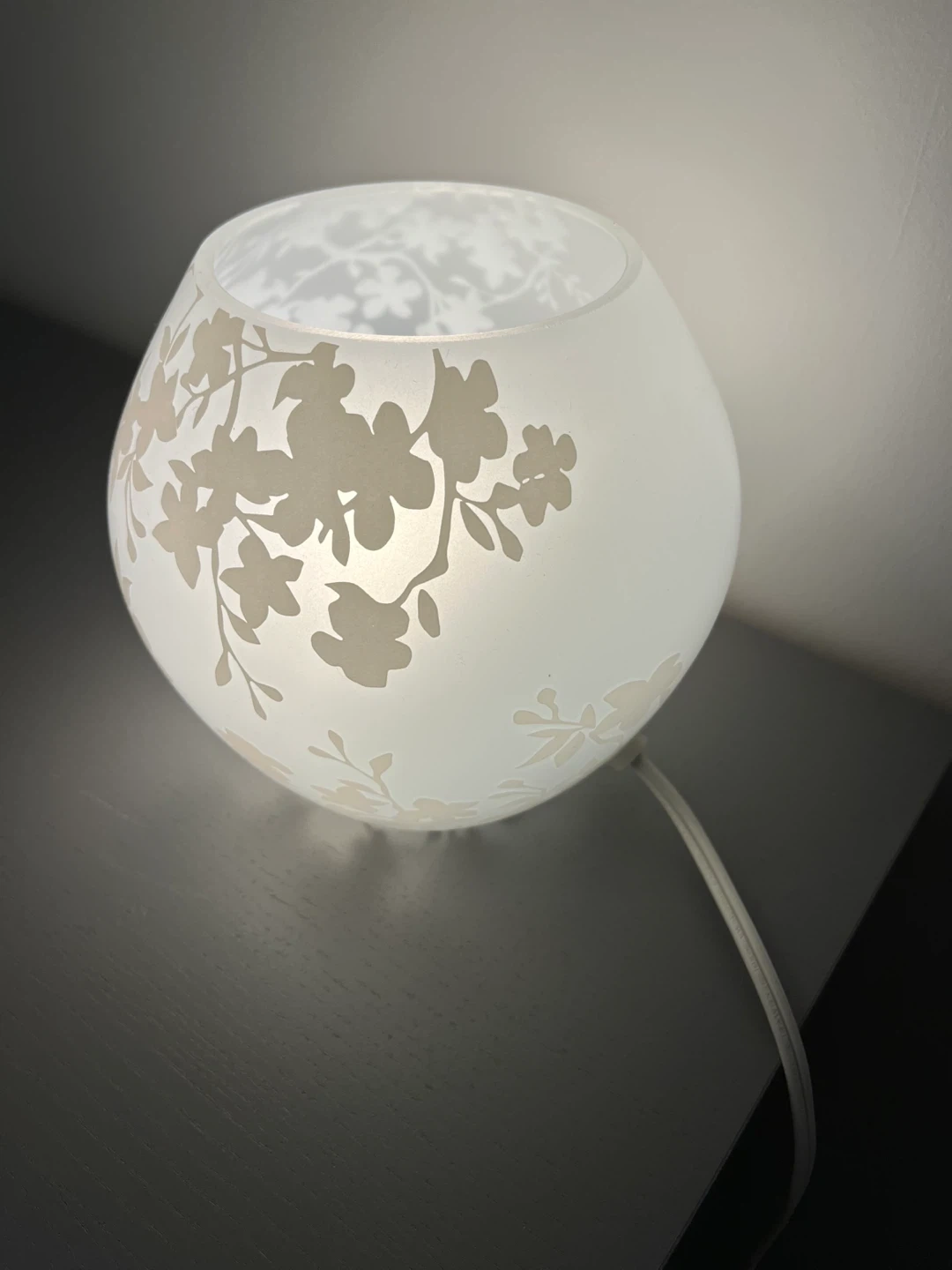 Here's a cute little table lamp with a floral pattern on the glass. It gives off a warm, gentle glow, perfect for a bedside table or desk. It's in great shape and ready to brighten up your space! Pick/up or delivery available in Erin Mill Mississauga or Yorkdale area