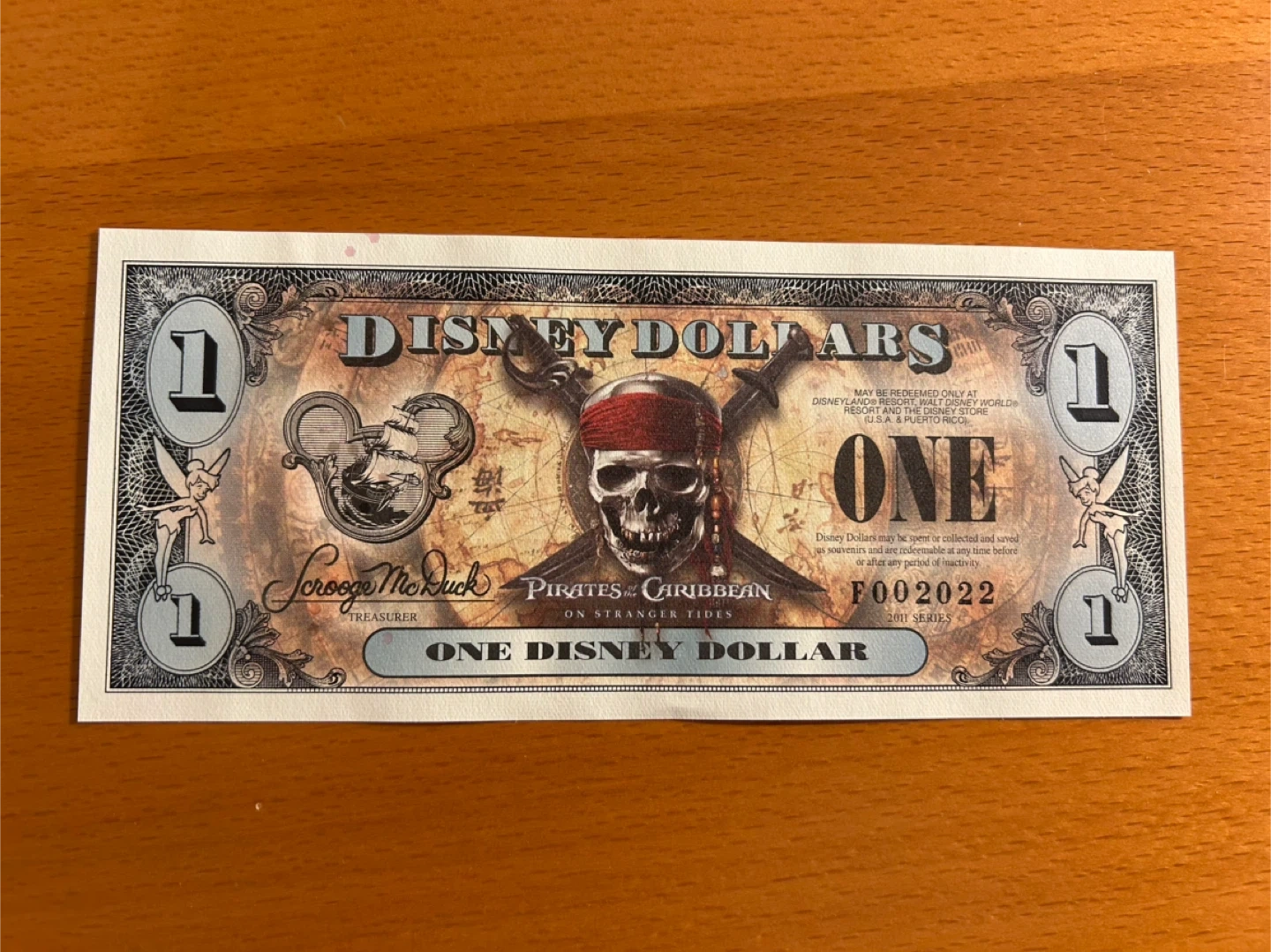 Selling PotC Disney Dollar! Shows the Queen Anne's Revenge and the other side has a skull and crossbones from Pirates of the Caribbean: On Stranger Tides Uncirculated