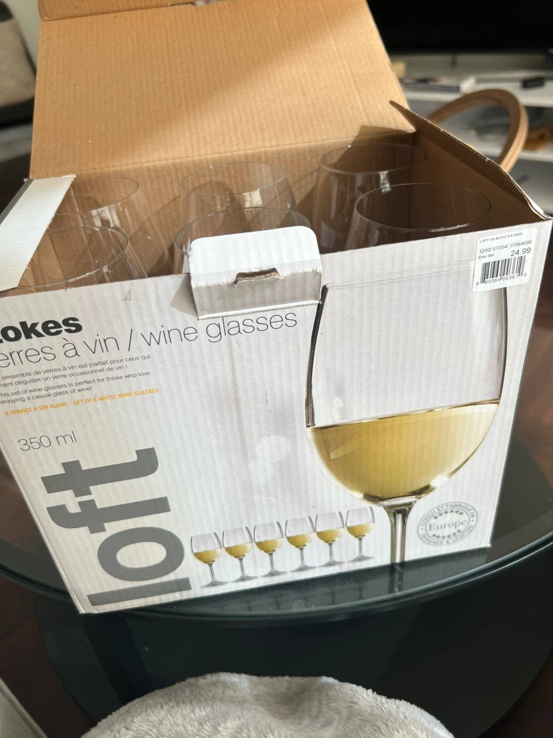 Selling a set of 6 Stokes Loft wine glasses. They are brand new and still in the box! Each glass holds 350 ml. Originally bought for $24.99