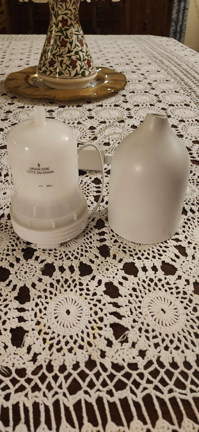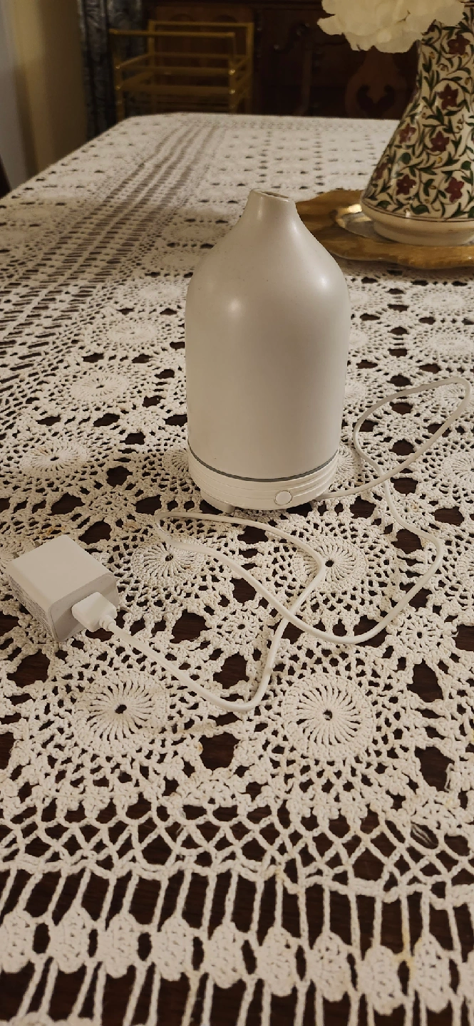 Selling a white ceramic diffuser. It's in great condition and would be perfect for adding a relaxing scent to any room. Comes with all the components you see in the pictures!