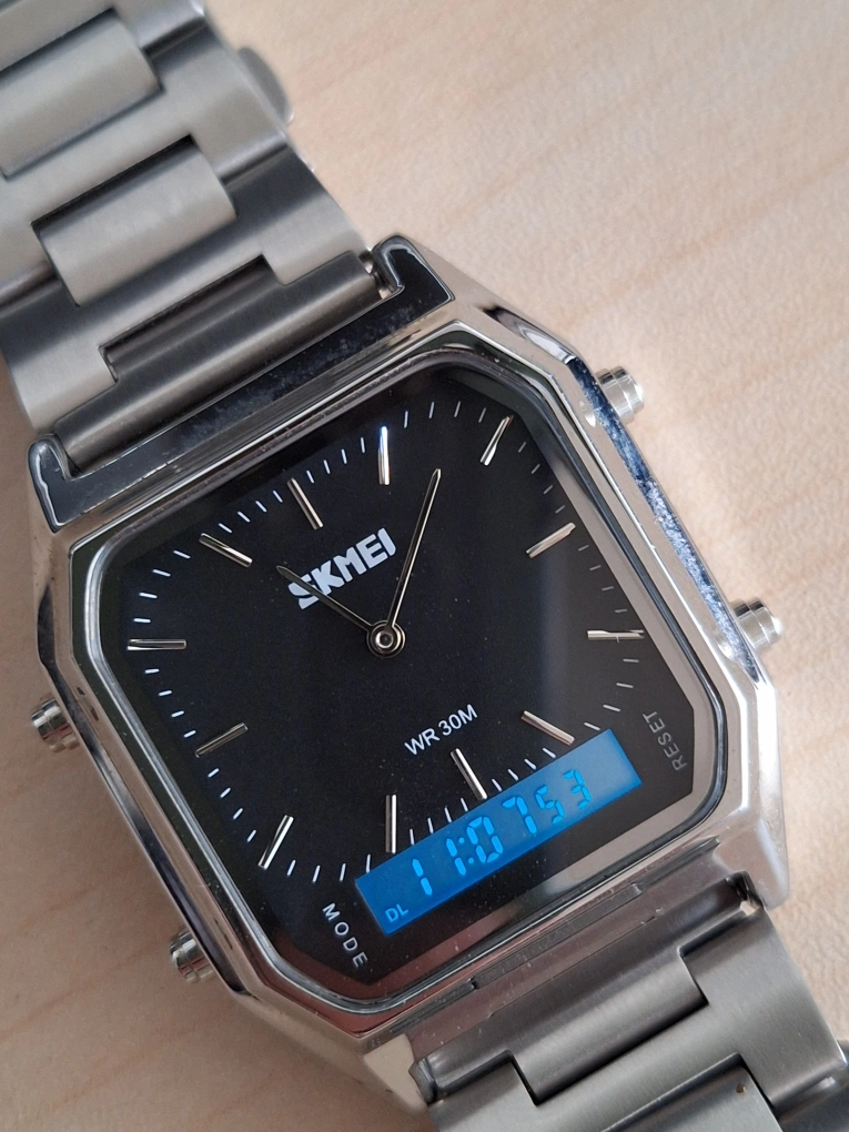 Selling a Skmei 1220 digital watch. It's in great condition and ready for a new wrist! The watch is water-resistant to 3ATM, perfect for everyday wear.