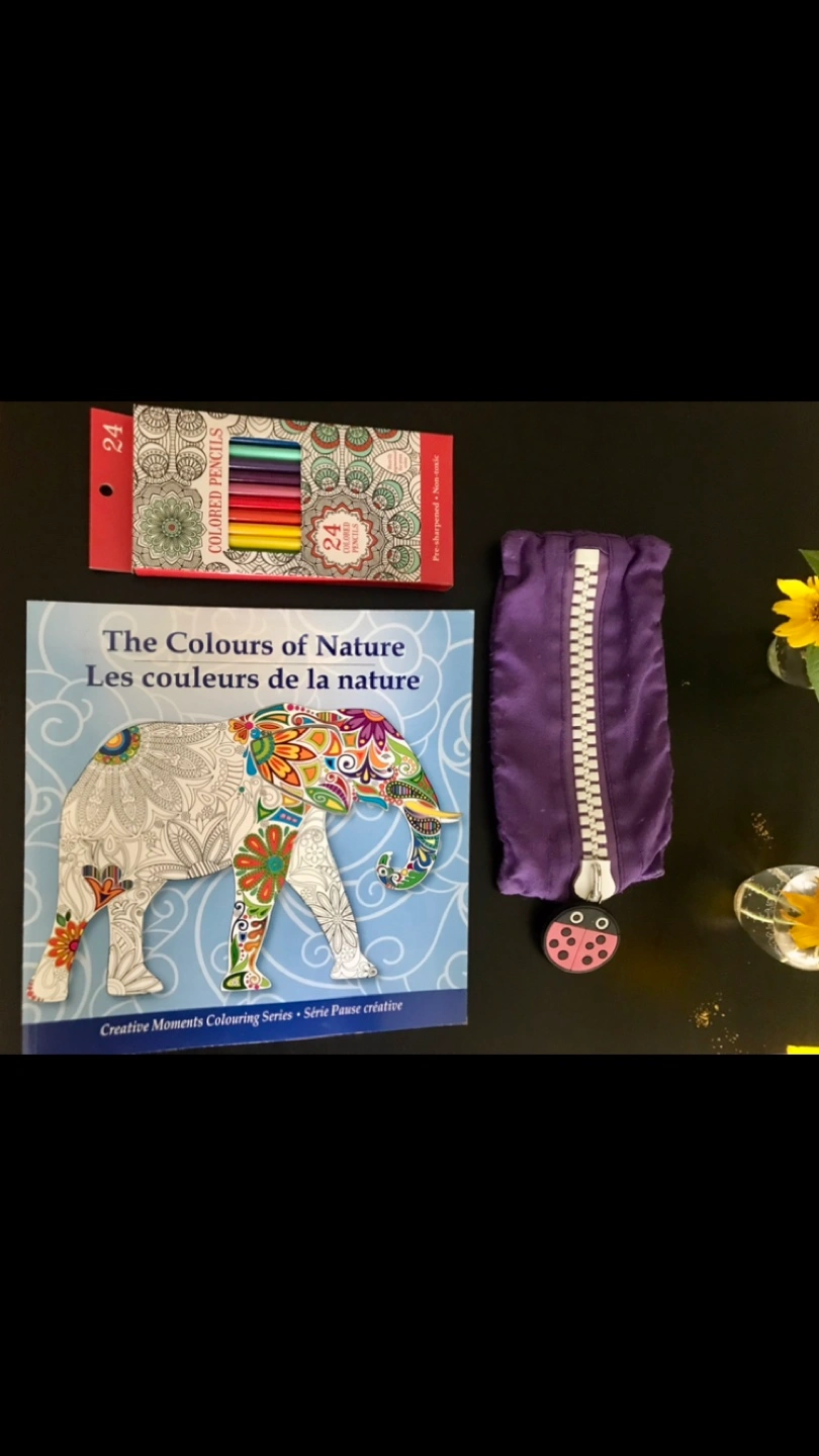 1) ✨NEW coloring book: features intricate and detailed images of Nature. Very meditative and relaxing to color in such intricate drawing books, as the process makes you focus on the details. Creative, Fun, Calming. ————————— 2) ✨NEW Pack of 24 pre-sharpened coloured pencils. (Real wood.) ————————— 3) Cute Fabric Pencil case with a big, rubber Ladybug 🐞handle. Great for your stationery, cosmetics or any other items. Good condition.