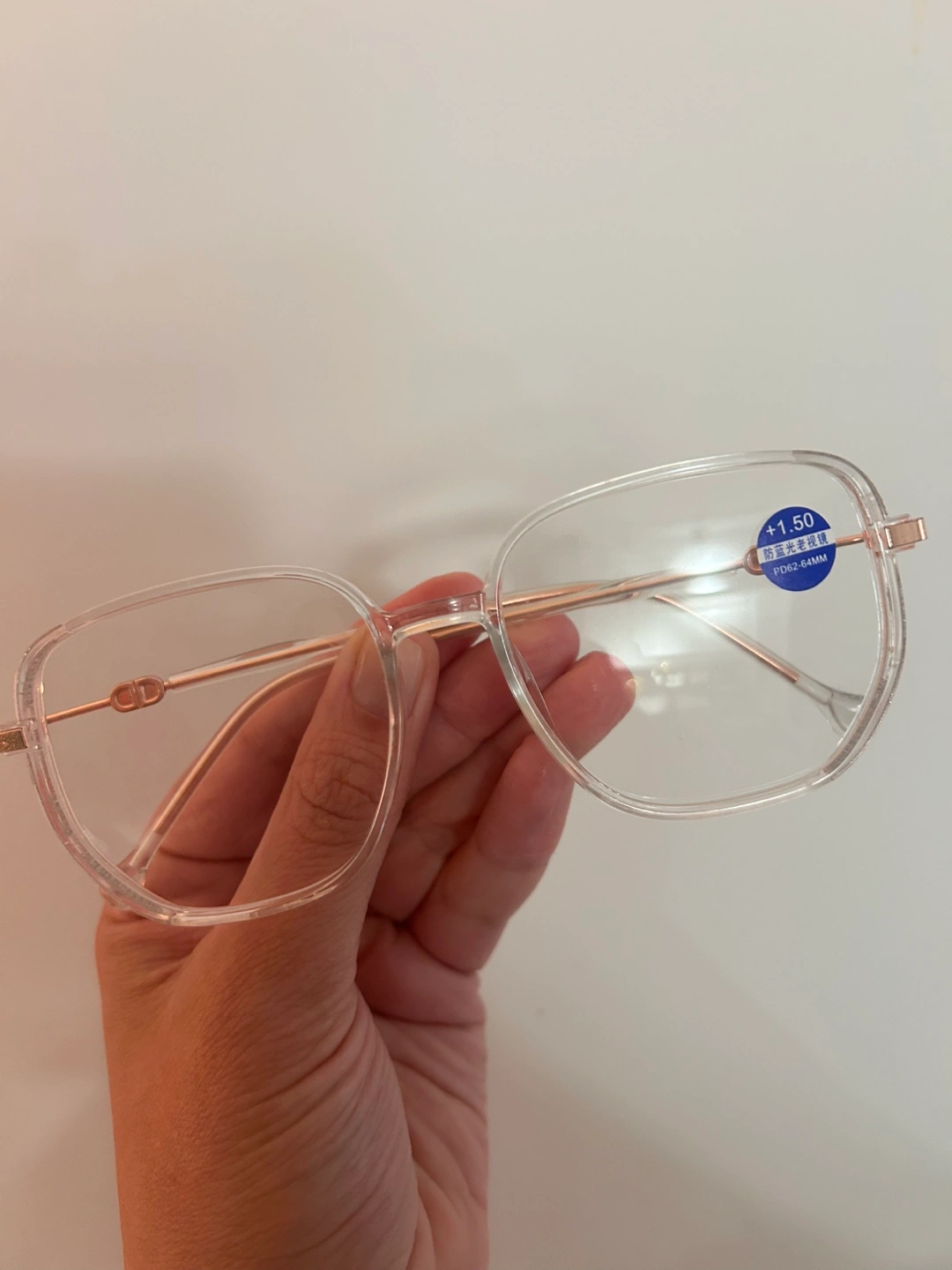 Selling a pair of glasses with a stylish square frame and a +1.50 magnification. New, never used!