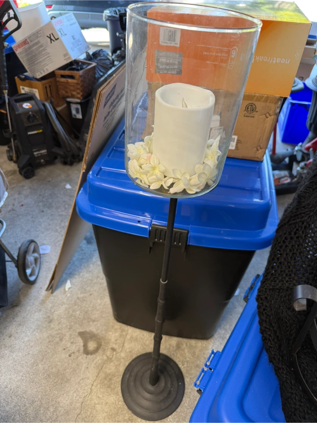 Selling candle holders with glass hurricanes. It’s perfect for adding a touch of warmth to any room. The set includes the metal stand and a clear glass hurricanes, ready to hold your favourite candles and decorative elements.
