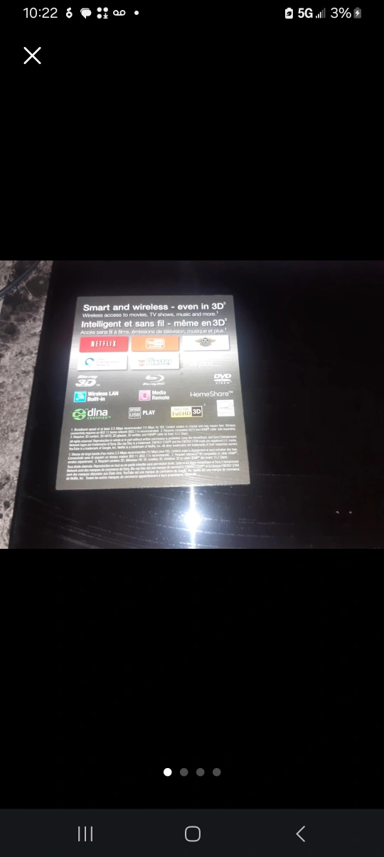 Selling a Sony Blu-ray 3D Disc Player. It has wireless LAN built-in and is smart and wireless, even in 3D. comes with cables no remote you can use any Sony remote or a universal remote It's in good condition and ready to play your favourite Blu-ray discs 647-203-0411