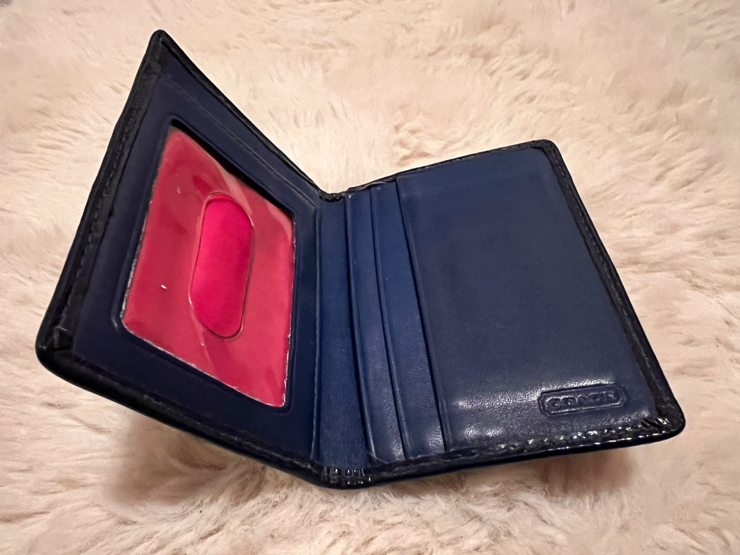 Selling a Coach in blue patent leather card case. It has a few signs of wear, but still in good condition. Perfect for everyday use!