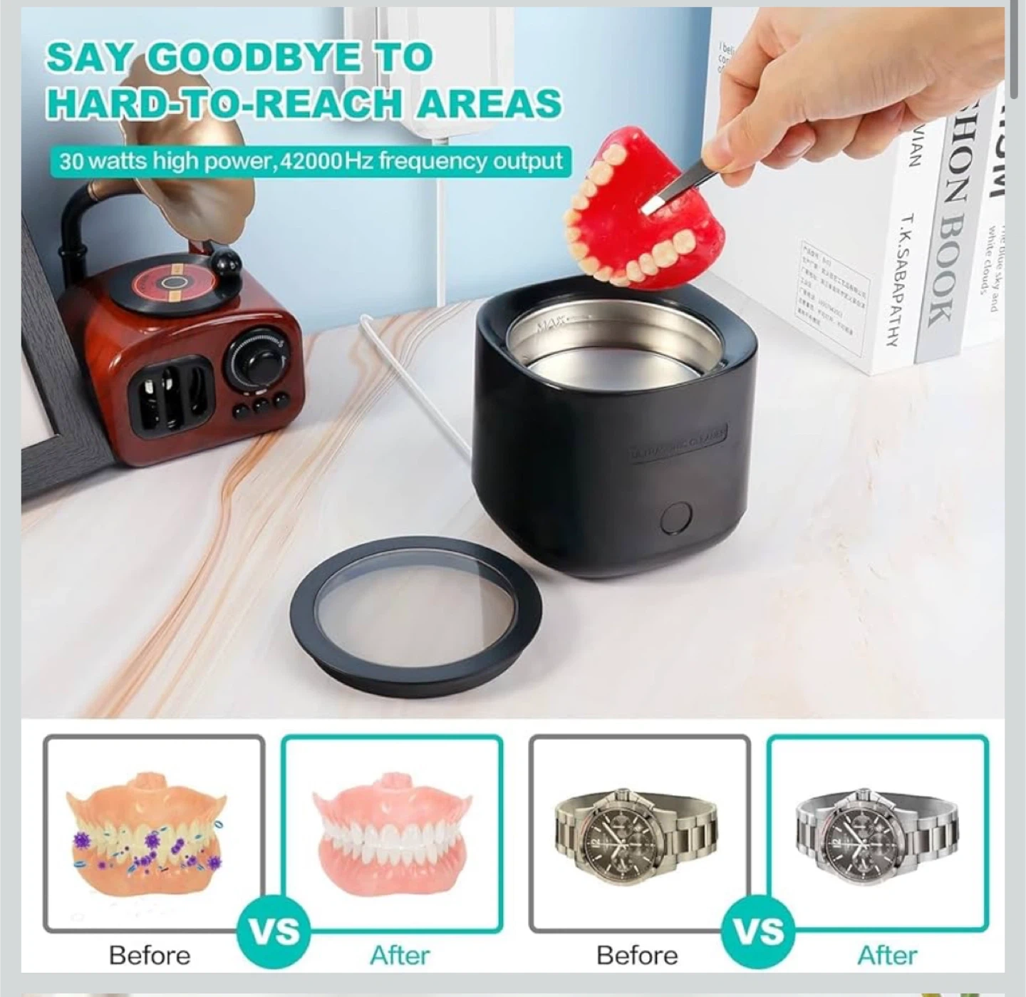 This ultrasonic cleaner is perfect for cleaning items like dentures, dental trays, rings, watches, baby pacifiers, and shaving heads! It operates at 30 watts with a 42000 Hz frequency output, making it effective for hard-to-reach areas