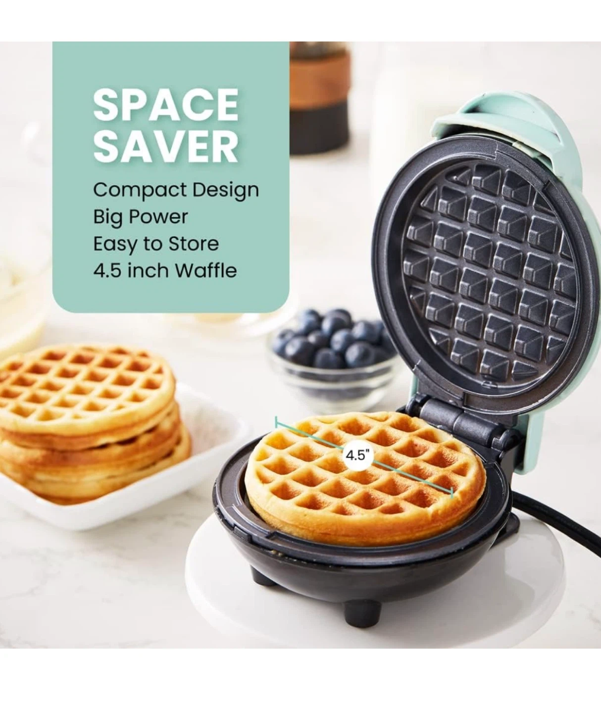 Make perfectly sized waffles with this Elite Gourmet mini waffle maker! It features a compact design for easy storage and makes 4.5-inch waffles. It's great for small kitchens or anyone who loves a quick and easy breakfast