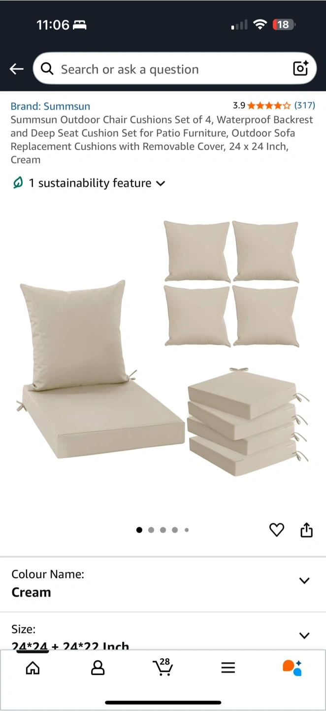 Summsun Outdoor Chair Cushions β Set of 8 (Cream) βοΈπͺ β NEW, Open Box Upgrade your patio furniture with this premium Summsun outdoor cushion set. π¦ Box opened, but all cushions are brand new, unused. β¨ Features: β’ 8-piece set: 4 seat cushions (24βx24β) + 4 backrest cushions (24βx22β) β’ Color: Cream β elegant & neutral, fits any outdoor dΓ©cor β’ Waterproof & removable covers with hidden zipper β’ Filled with premium resilience foam for maximum comfort β’ Adjustable straps for secure fit β’ Retail price on Amazon: $322.40 π² Price: 160 CAD π Pickup in Waterloo Perfect for patio chairs, outdoor sofa, or garden seating β add comfort and style to your backyard! π Check my other listings for more deals!